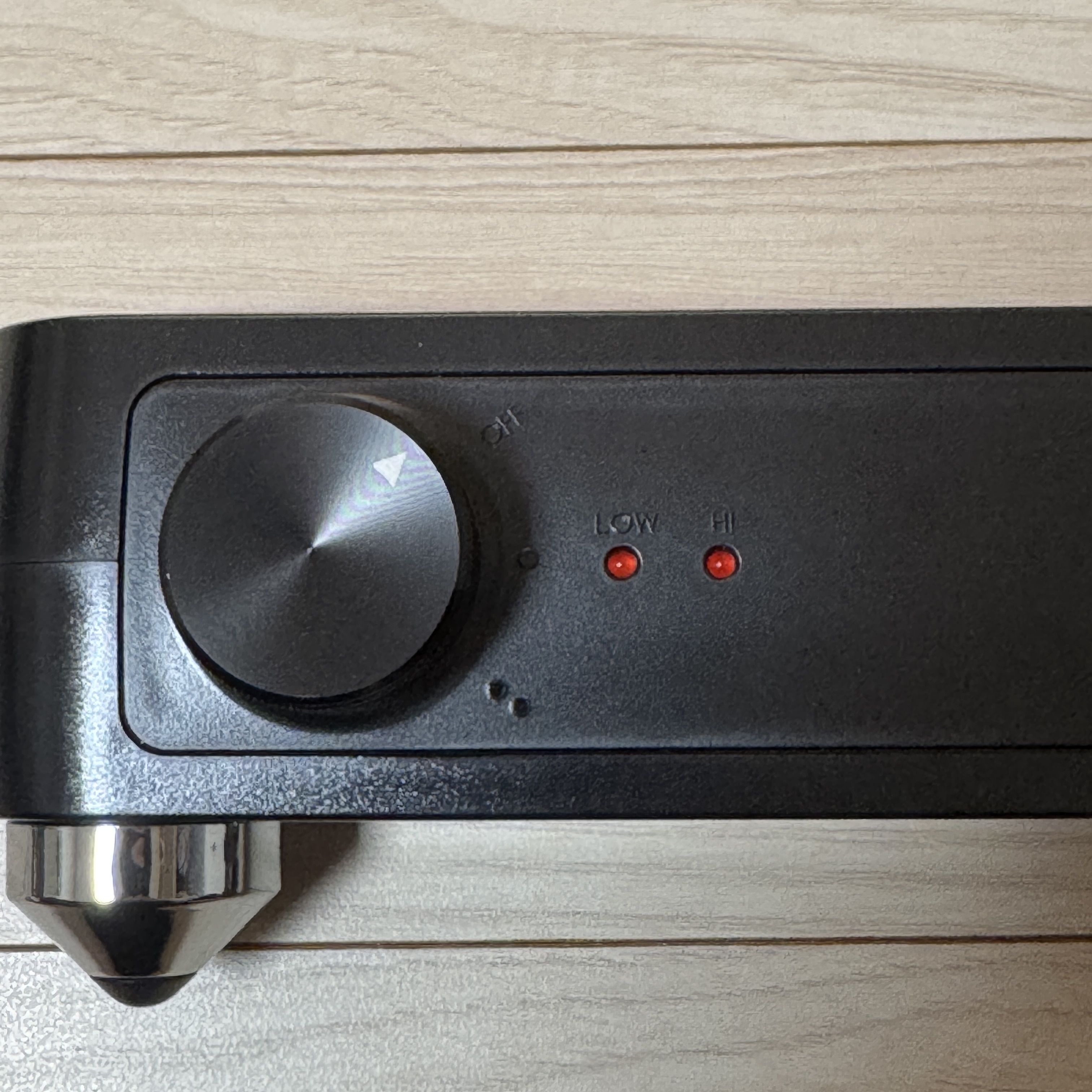 옆쪽에 전원 꽂아주고 왼쪽에 돌려주면 끝. Low, High 두 단계로만 되어 있더라. 온도 조절이.