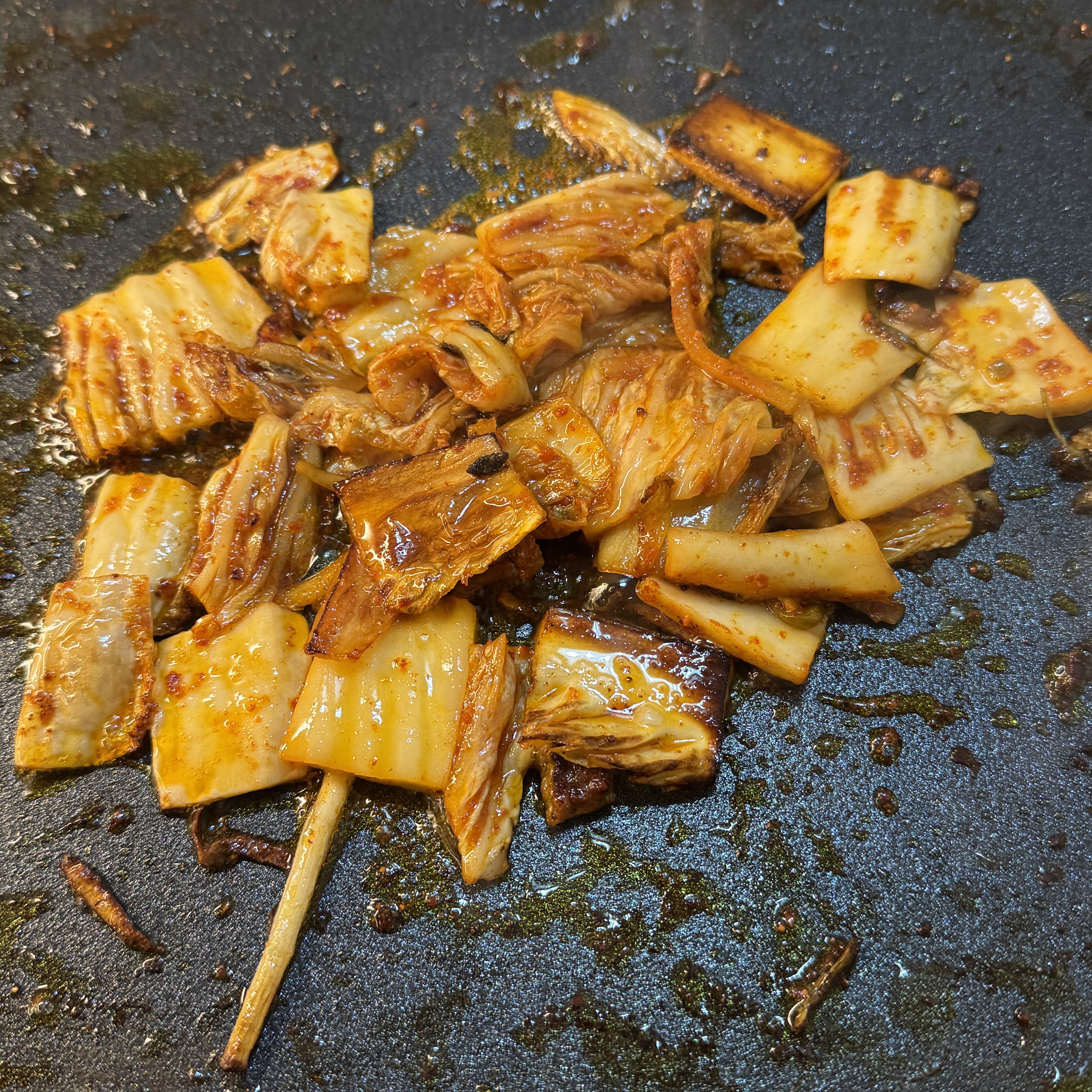 게다가 동생이 가져온 집 김치도 굽고. 김장해서 동생이랑 나랑 똑같은 김치 받아왔는데, 동생은 바깥에 둬서 벌써 익었고, 내 껀 아직 익지도 않았다. 그래서 동생 가져온 김치는 내가 먹기로 하고 내가 냉장고에 뒀던 김치는 동생 가져간. 김치 맞교환. ㅎ