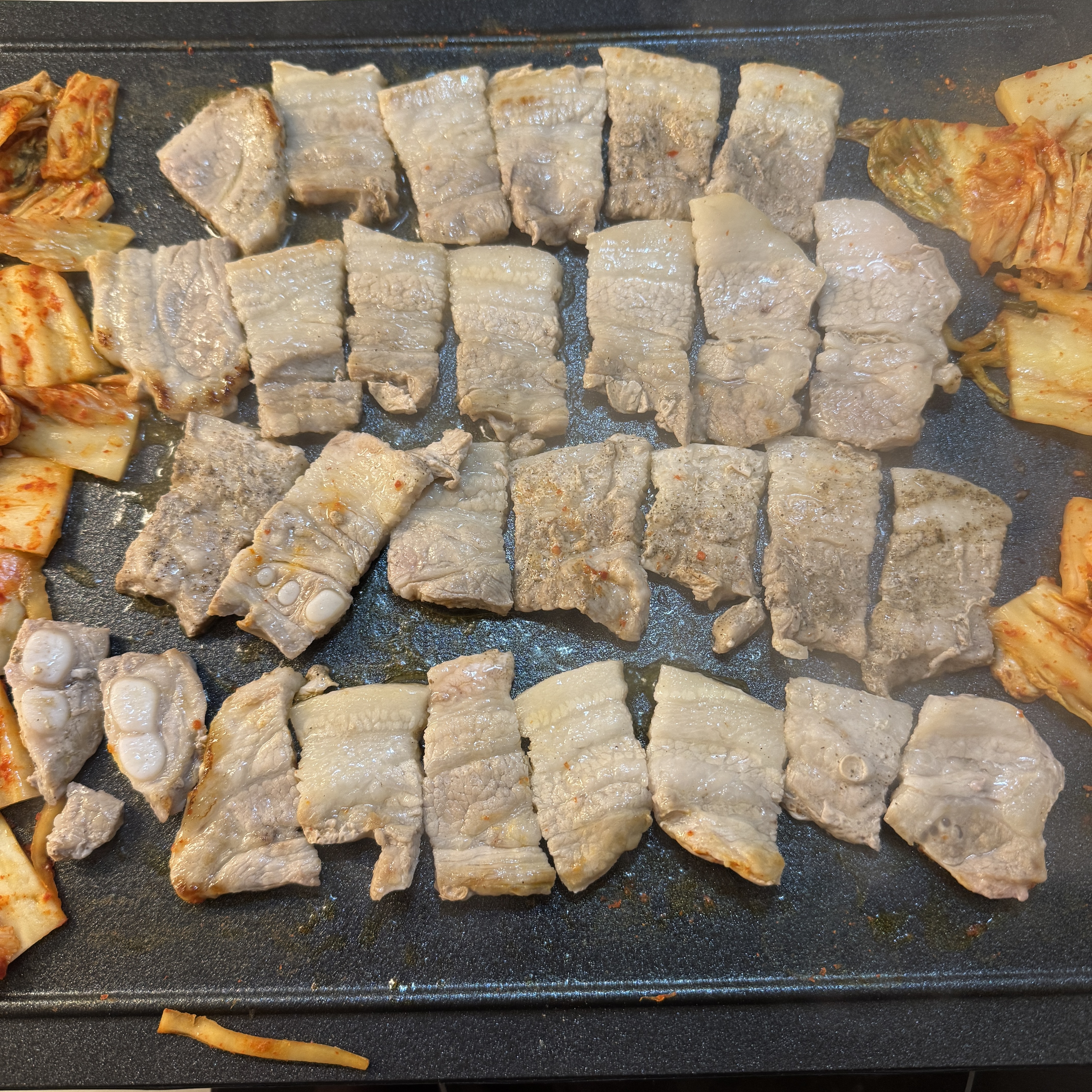 이번에 산 에버홈 전기그릴 인덕션 위에 올려두고 삼겹살 구웠다. 삼겹살 냄새 때문에 인덕션 위에 후드가 있어서. 그리고 잔여 냄새 나지 않게 Himpel 환기 청정기 켜두고 구웠네.