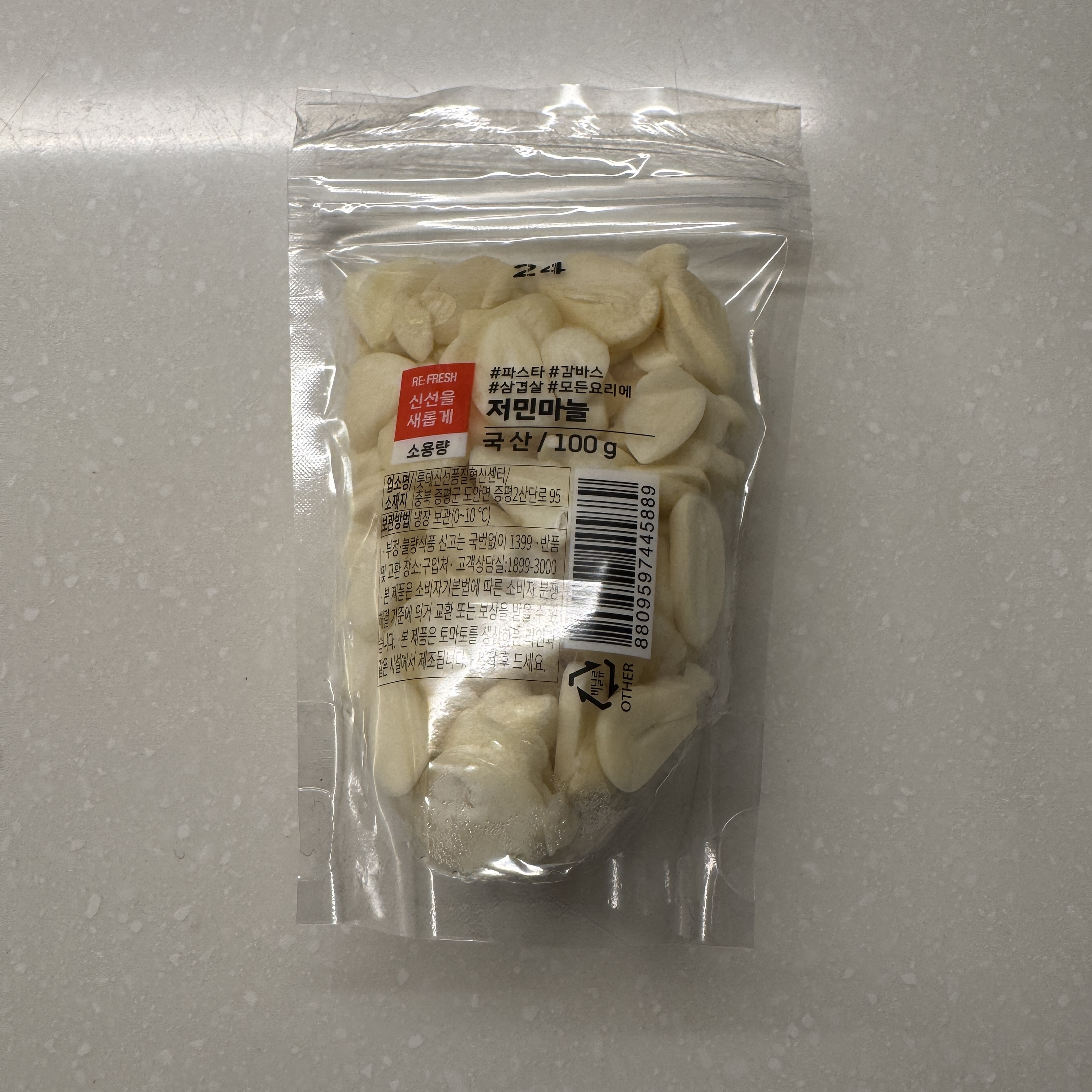 그리고 쌈장은 롯데마트에 있는 거 중에서 가장 용량 적은 걸로 간편한 쌈장 170g(1,000원) 샀고, 저민 마늘(3,590원) 사왔다. 마늘은 너무 얇아서 좀 그렇더라. 나는 생마늘을 좋아하는 편인데, 너무 얇아. 뭐 한 번에 많이 먹으면 되긴 하지만.