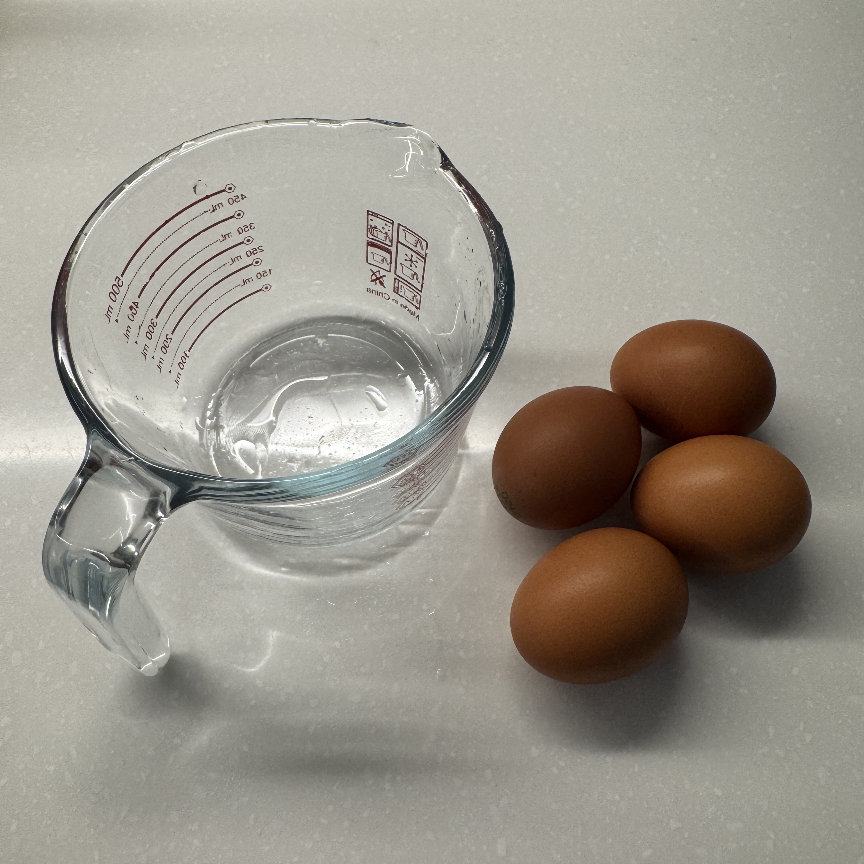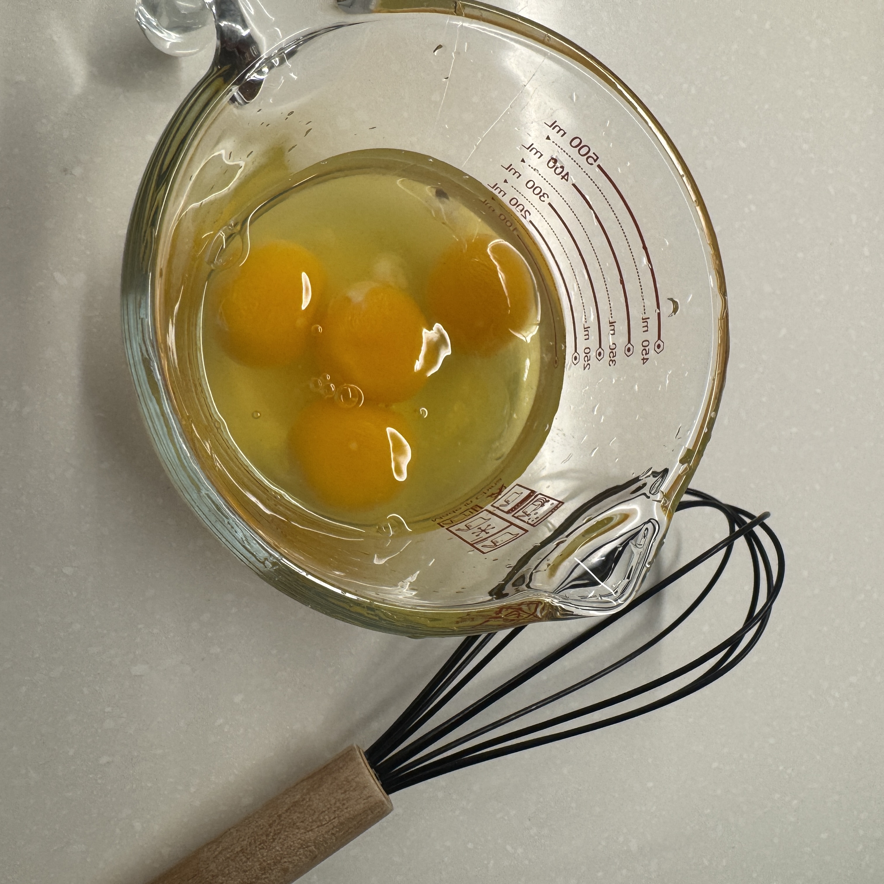 최근에 산 계량컵에 계란 네 개 풀어주고