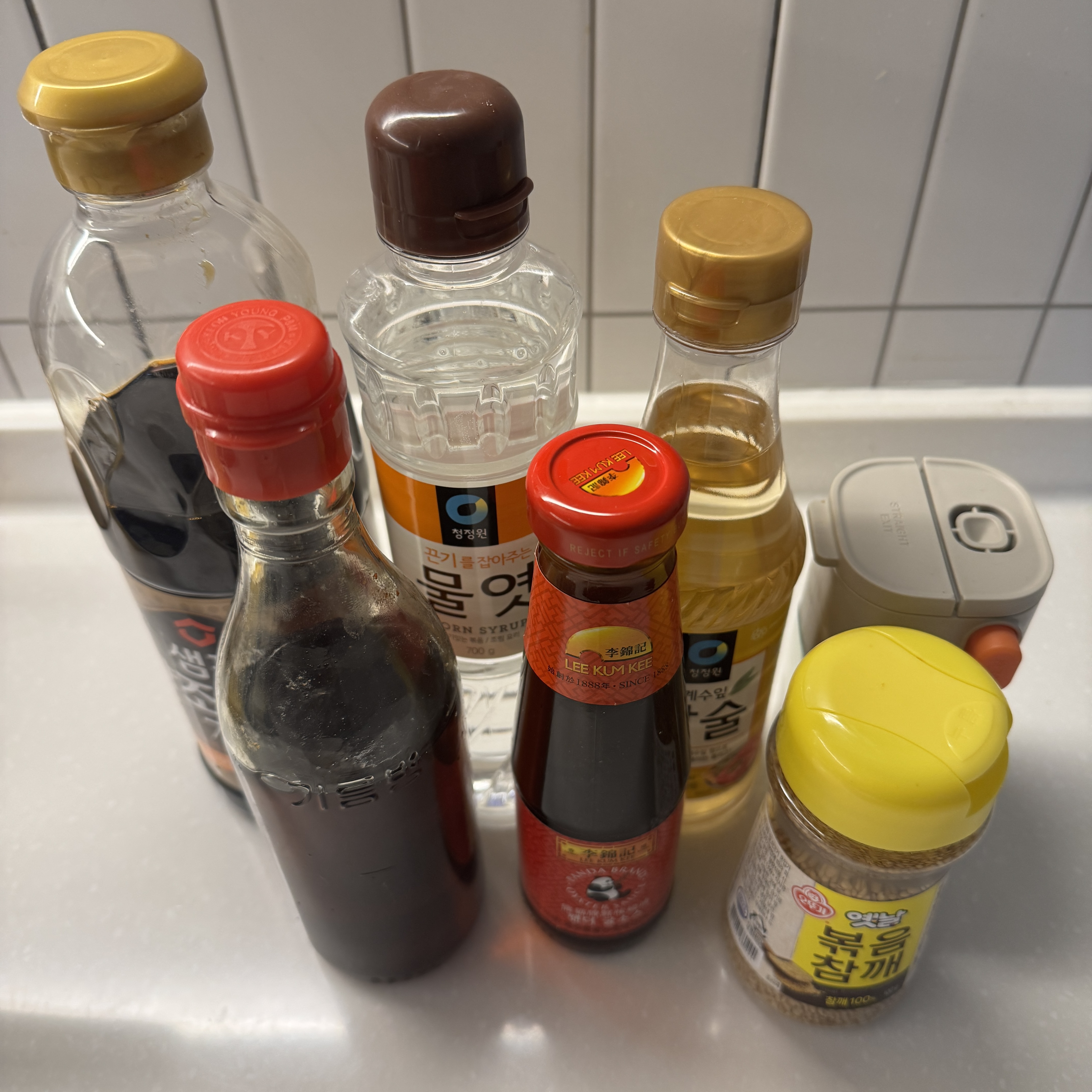 양조간장 2스푼, 굴소스 1스푼, 맛술 1스푼 넣는다. 이거 땜에 굴소스와 맛술까지 샀다. 사두면 요즈음은 해먹으니까 언젠가는 다 쓰겠지. 생각보다 빨리 닳는 듯 싶더라. 내가 그렇게 많이 해먹는 것도 아닌데. 왜 집에 양념통이 많았는지 음식 해먹으니까 알겠더라. 자주 쓰는 게 아니라고 해도 없으면 안 되는 그래서 다 구비하고 있어야 하는.