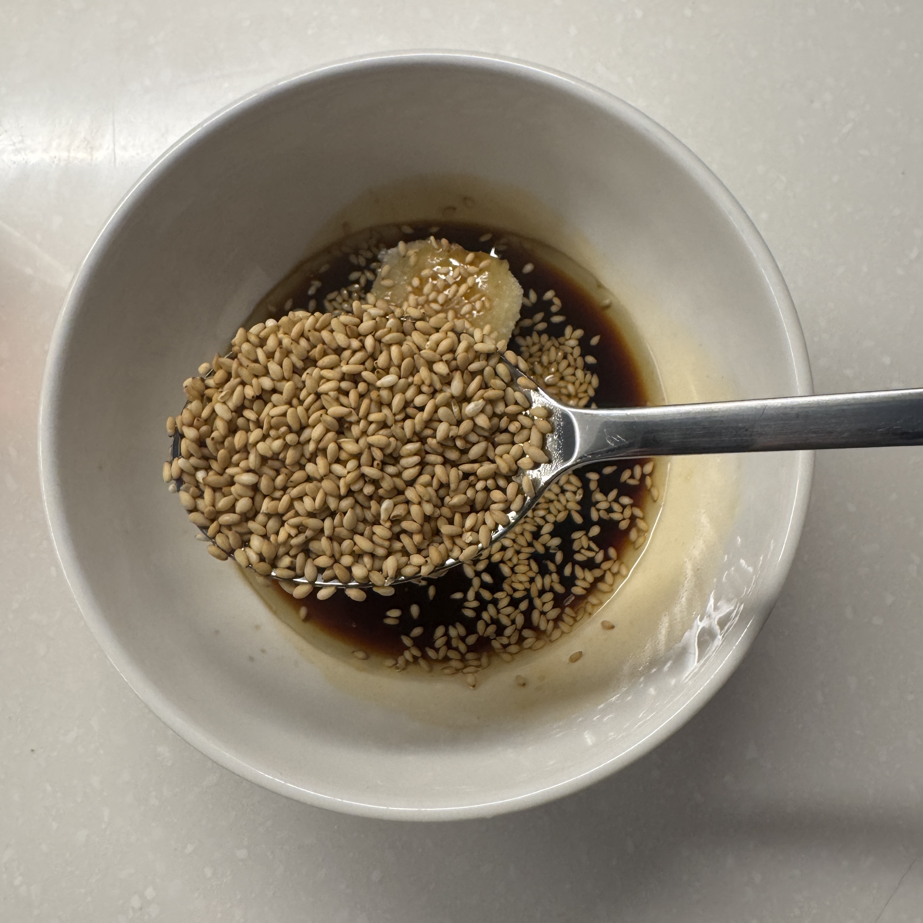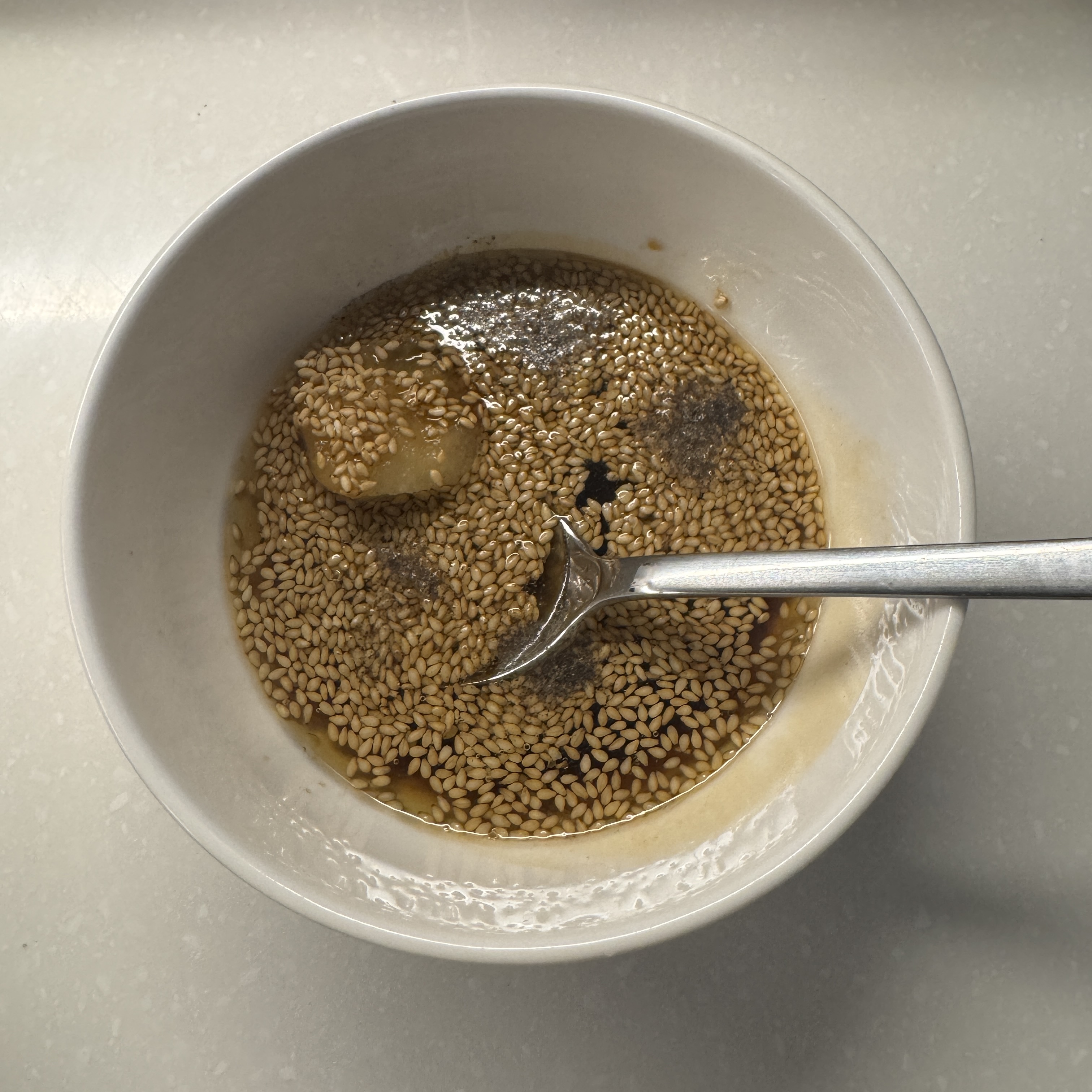 그리고 참기름 1스푼과 통깨 2스푼, 물 3스푼 넣는다. 냄새는 좋더라. 음식하면서 느끼는 거지만 양념 만들 때 식욕이 자극되는 듯.