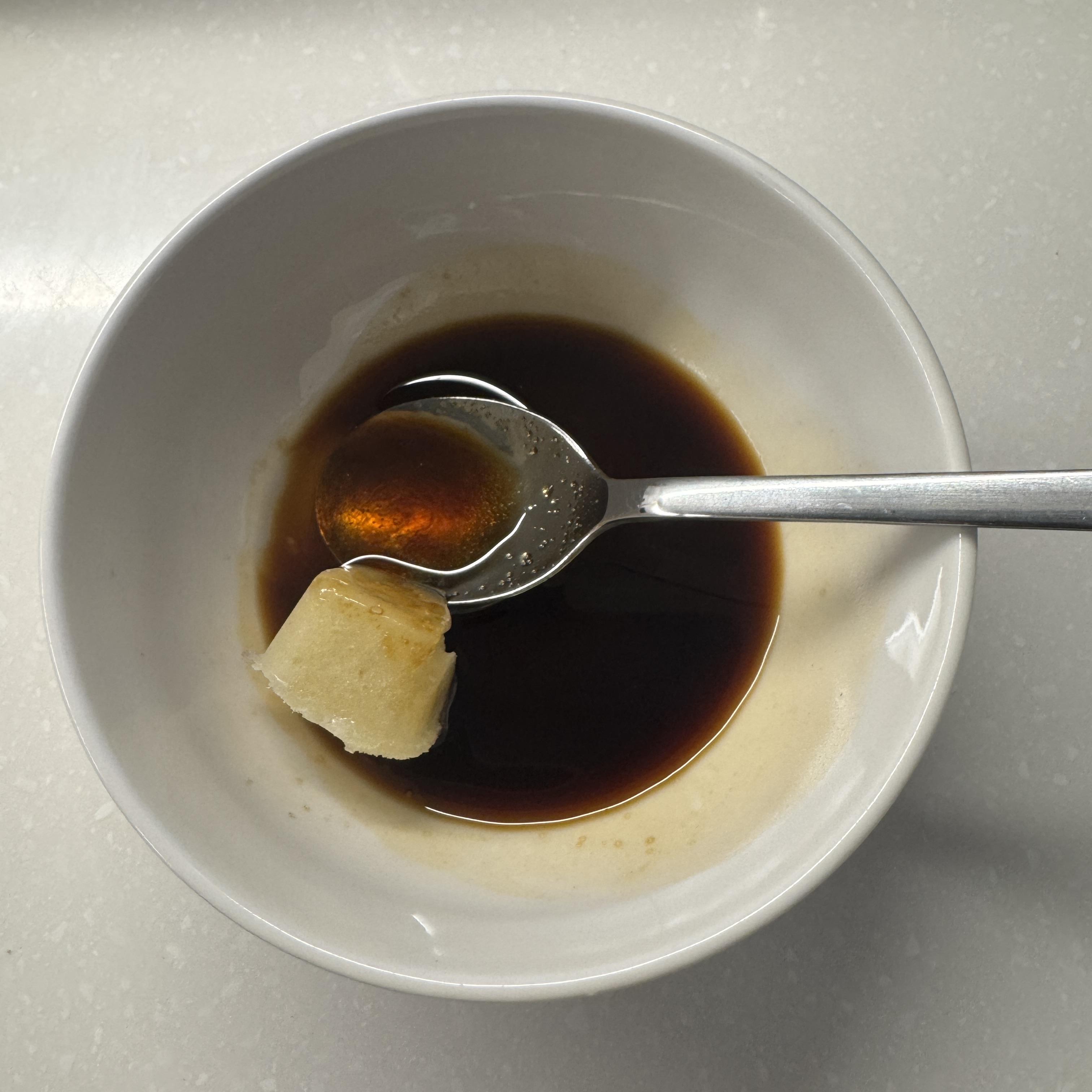설탕은 1/2스푼, 물엿 1스푼, 다진 마늘은 그냥 냉동 다진 마늘 한 덩어리 넣었다.