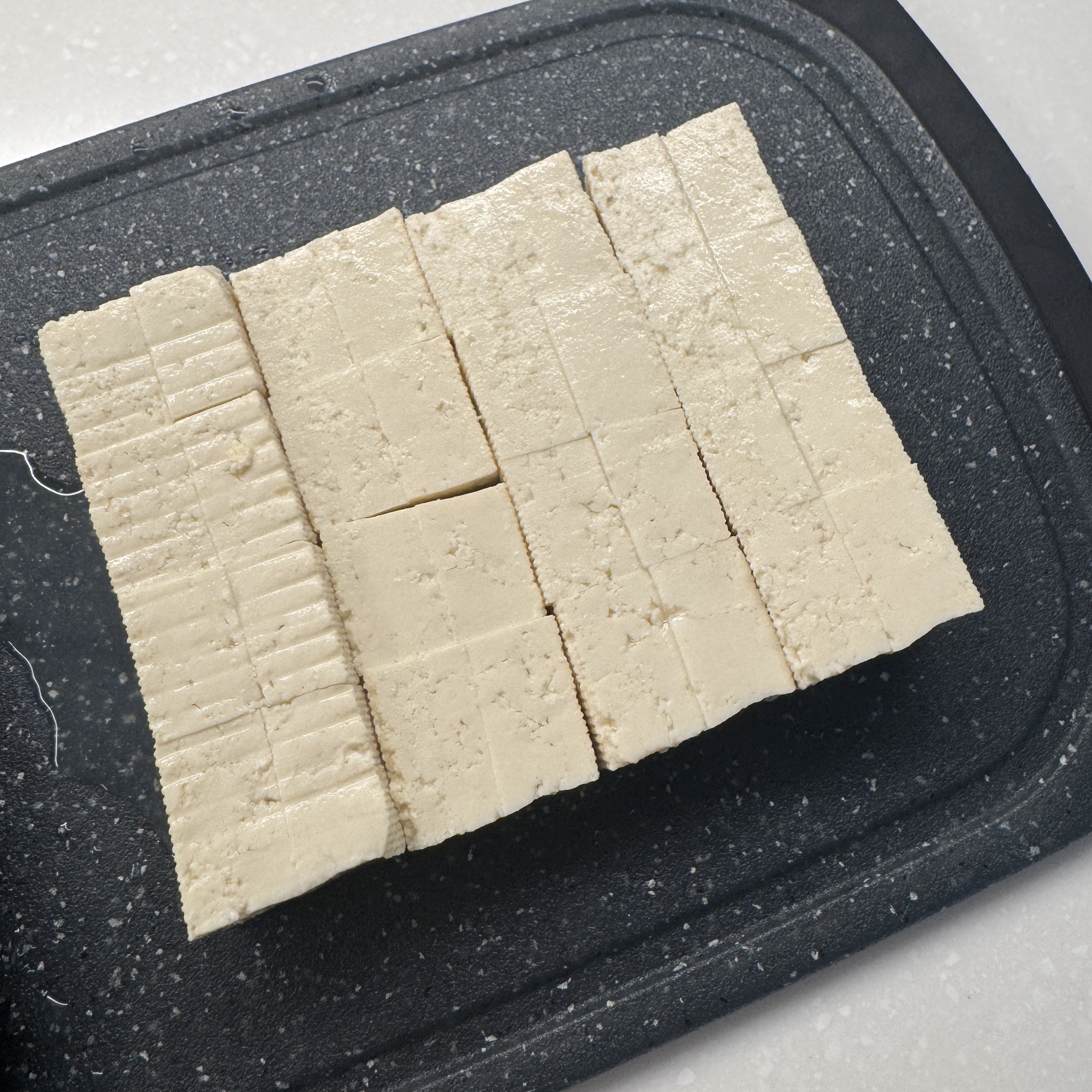이번엔 찌개두부로 290g 짜리 샀다. 사실 아직까지 두부 구분 못한다. 순두부와 일반 두부로만 구분해서. 먹고 맛있으면 끝이라는 생각에 별로 관심도 없다. 사진에 유통 기한은 한참 전인데, 유통 기한 전에 만든 거다. 포스팅만 늦게 올리는 것일 뿐. 두부를 여러 조각으로 잘라두고.