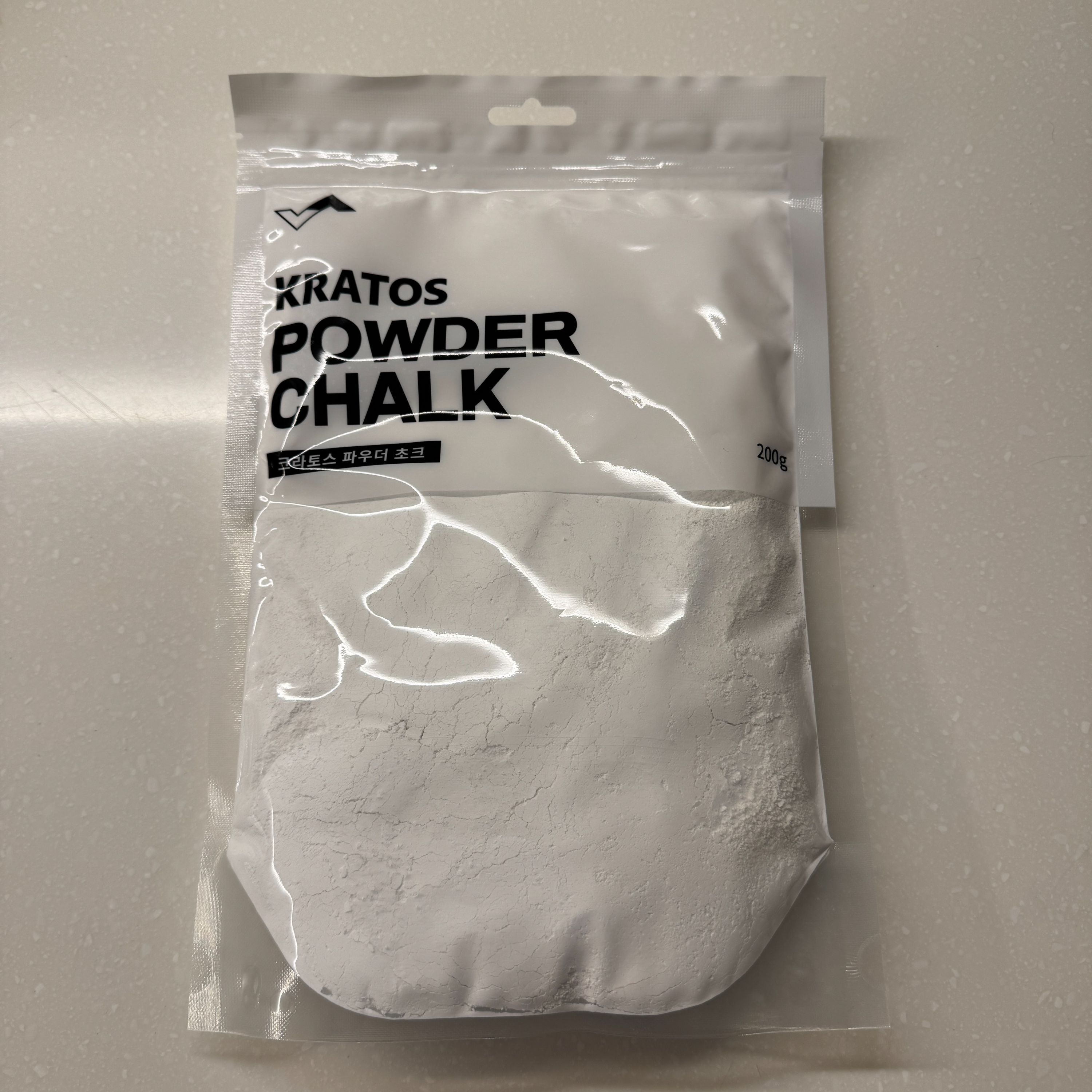 초크는 이걸로 샀다. 클라이밍용이 아니라 리프팅용인데, 그거나 그거나 매한가지지 뭐 해서. 강습받는 강사한테 물어보니 초크는 별 차이 없으니 싼 거 사라고 하더라. 그래서 이걸로 샀지. 어차피 초크라고 하는 게 수분 흡수 즉 손에 땀을 없애는 용도니까 매한가지거든. 마그네슘 카보네이트 재질. 다만 타입이 몇 가지가 있다. 파우더(분말), 크러쉬드(조각난 덩어리), 블럭(덩어리), 리퀴드(액상). 나는 파우더 타입으로 샀다. 왜? 몰라 다들 파우더 타입을 쓰는 거 같길래.