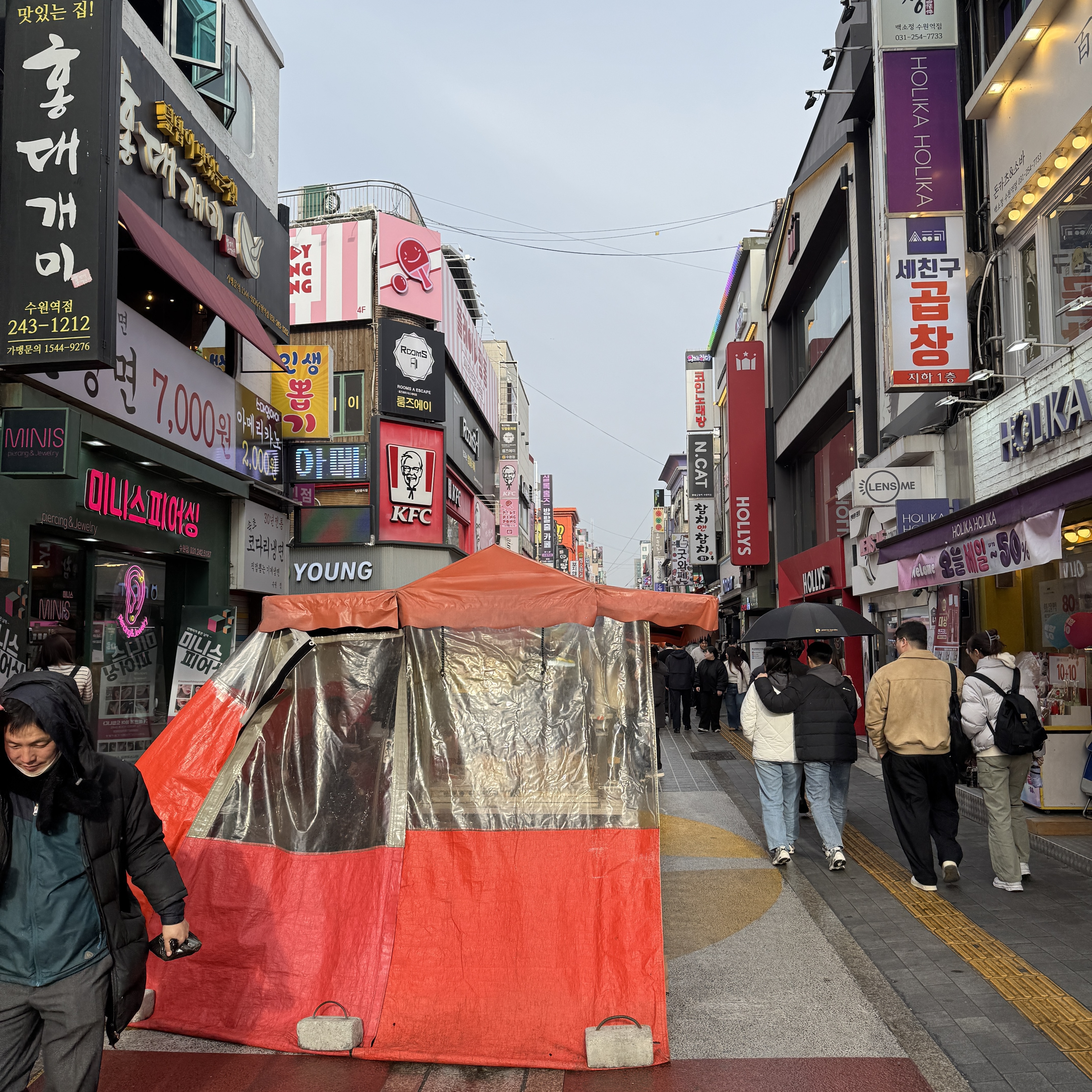여기는 수원역 로데오거리. 젊은 애들 많다. 골목이 그리 넓지 않아 북적북적하고. 인계동과는 좀 다른 느낌.