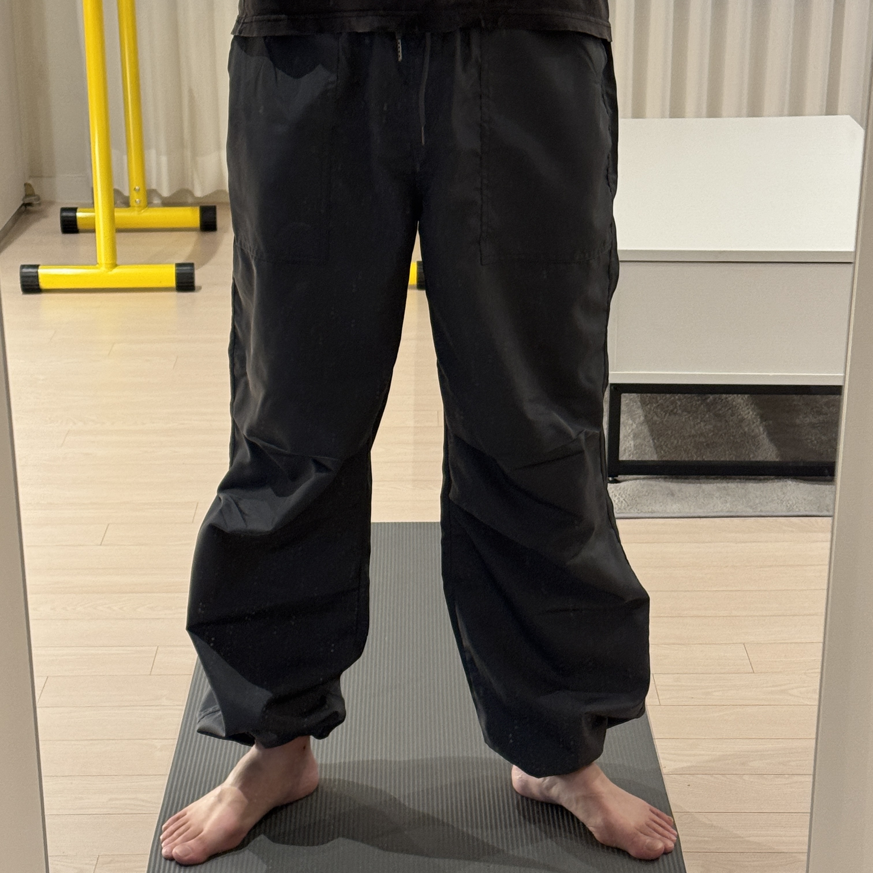 사이즈는 XL 사이즈와 Free 사이즈 두 개만 있던데, Free 사이즈 선택했는데, 허리가 스트링 묶지 않아도 될 정도로 타이트하더라. 내가 허리가 굵은 게 아닌데. 색상은 블랙, 차콜, 카키 있어서 차콜 선택했다.