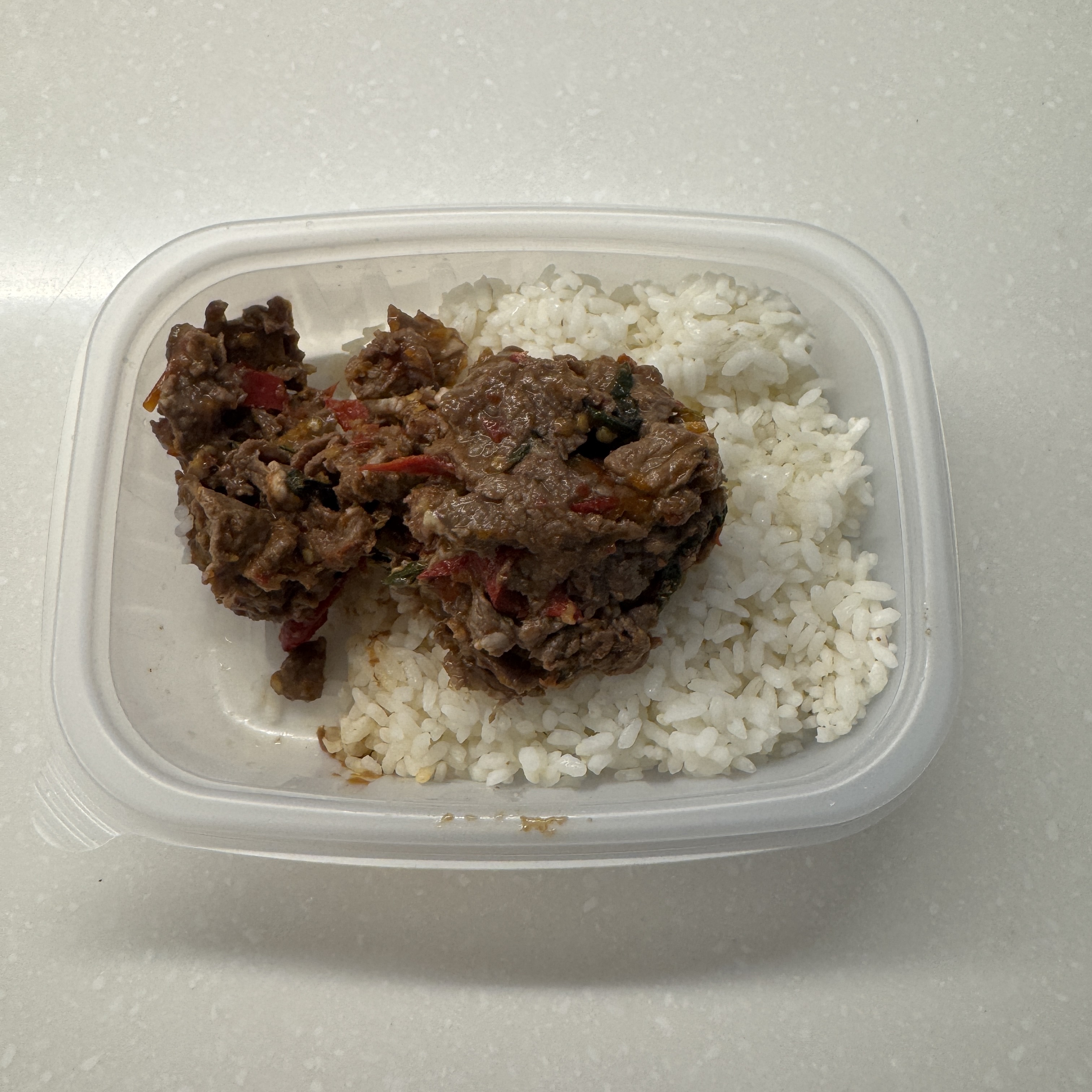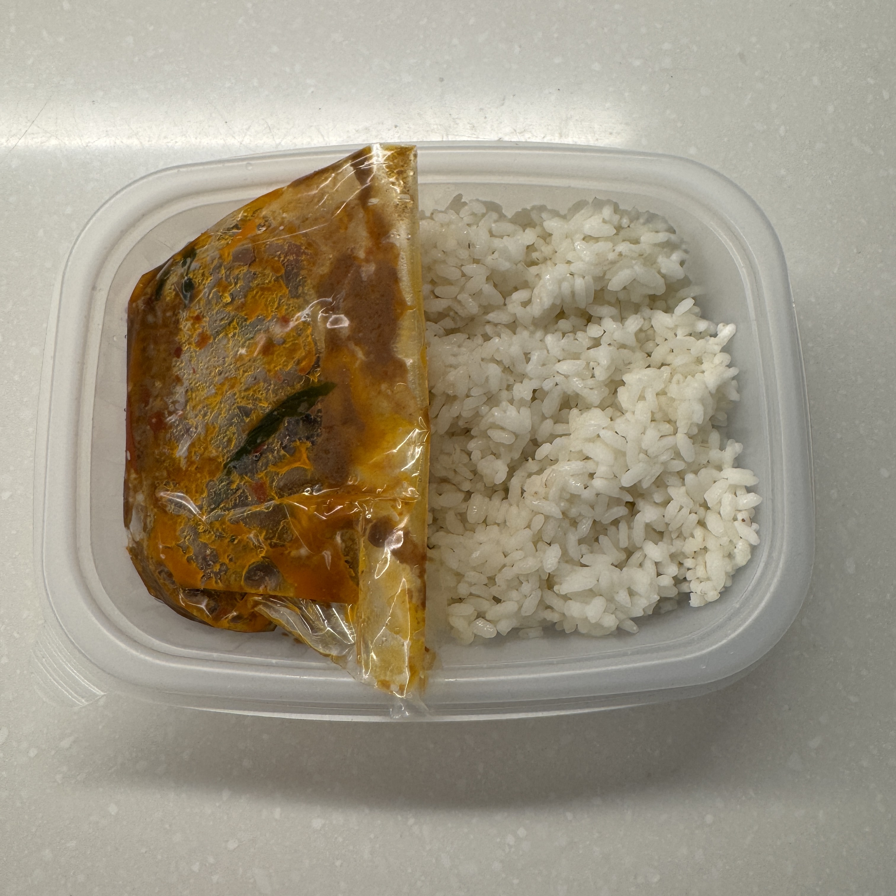 내용물을 밥 위에 붓고 전자렌지 돌린 후에 계란 후라이 올려서 먹으면 된다. 태국에서는 카이다우라고 해서 튀긴 계란을 올려주지. 맵다. 이유가 태국 고추 때문. 그래서 고추는 다 빼고 먹었다. 오랜만에 먹으니까 괜찮네.