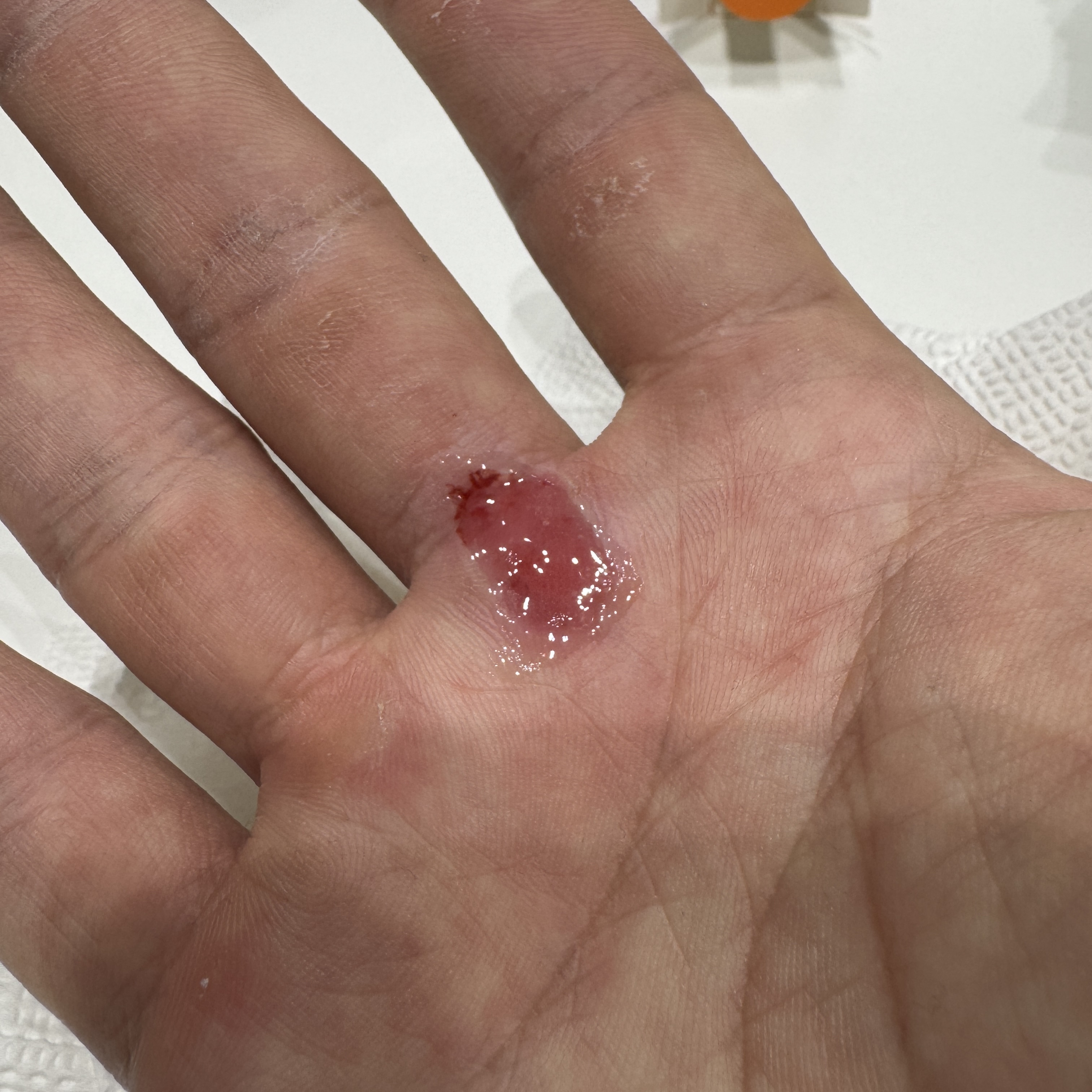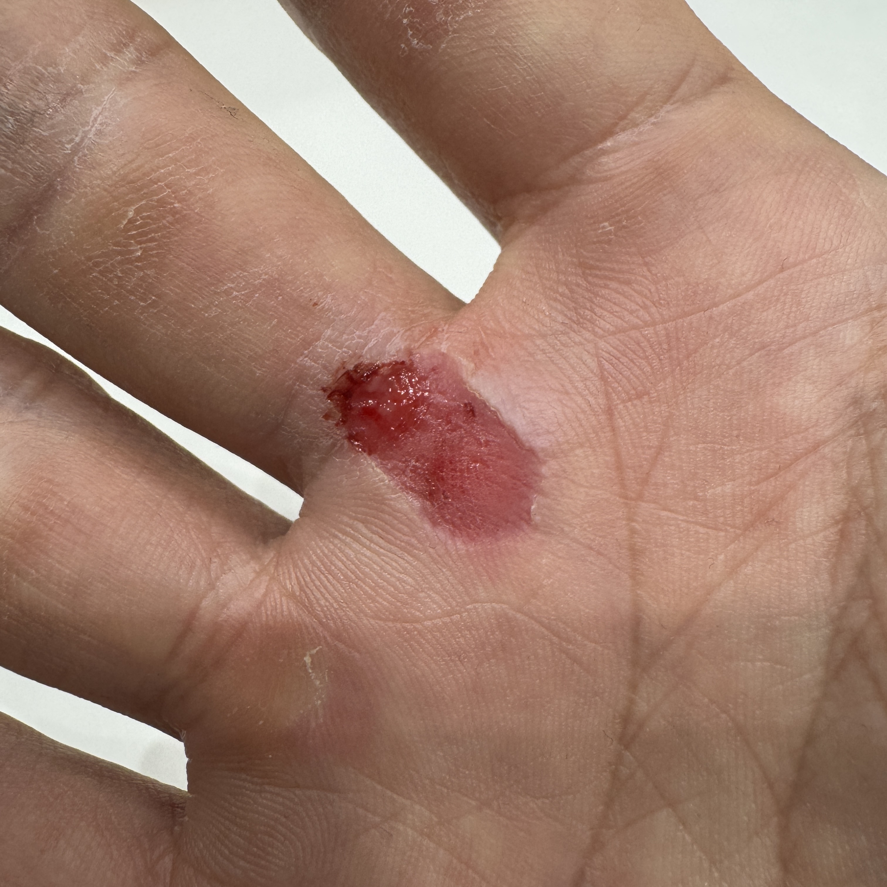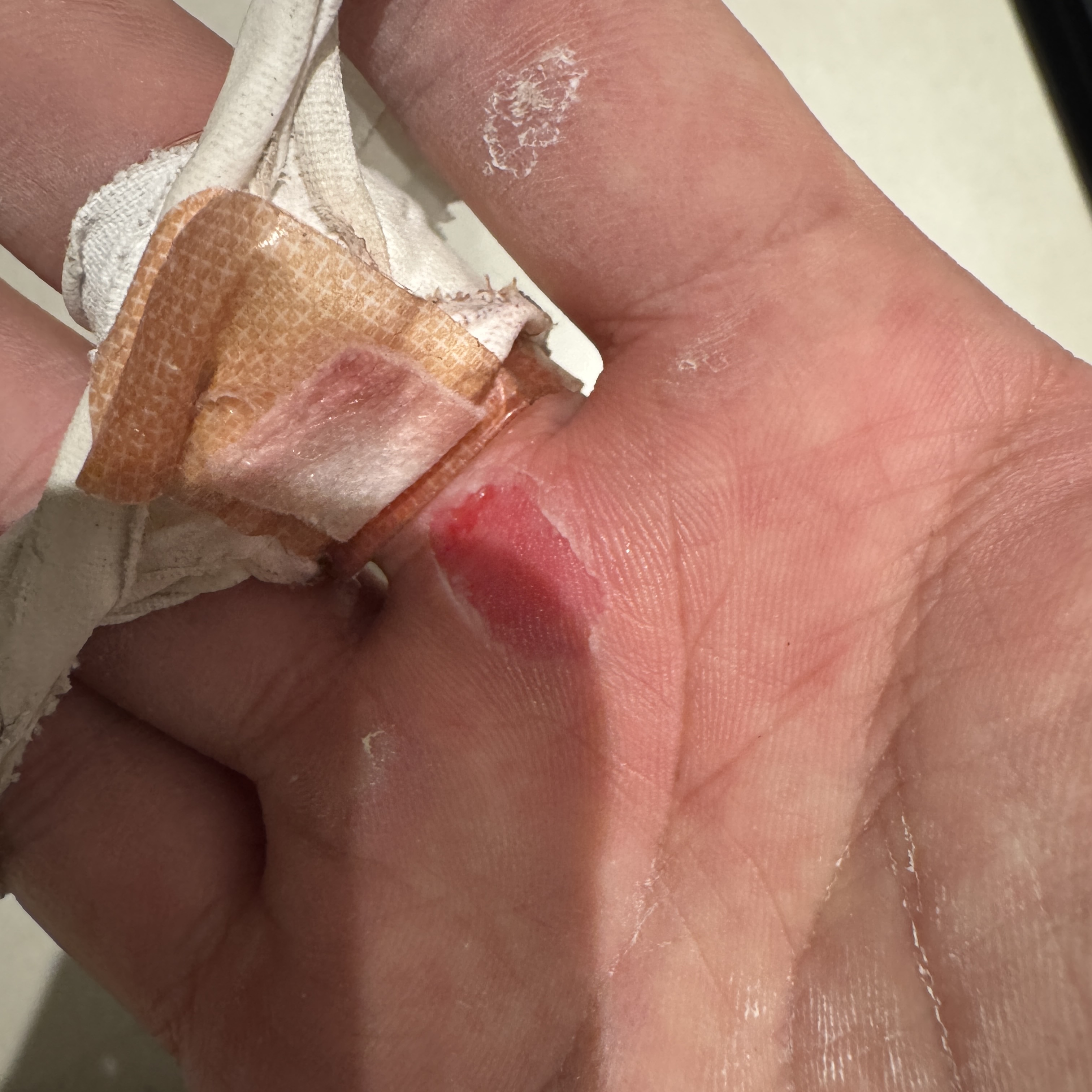 그게 이 오른손이다. 클라이밍 끝나고 반창고 들췄더니 표피가 한 꺼풀 벗겨진 거였다. ㅠ 나올 때 보니까 이렇다. 특히 손가락과 바닥의 경계 부위는 좀 많이 패여 있다. 그 부분이 제일 따갑기도 하고. 근데 부위가 부위인지라 쉽게 낫지는 않을 거 같다는 생각이 들더라. 좀 오래 가겠네. 쩝.