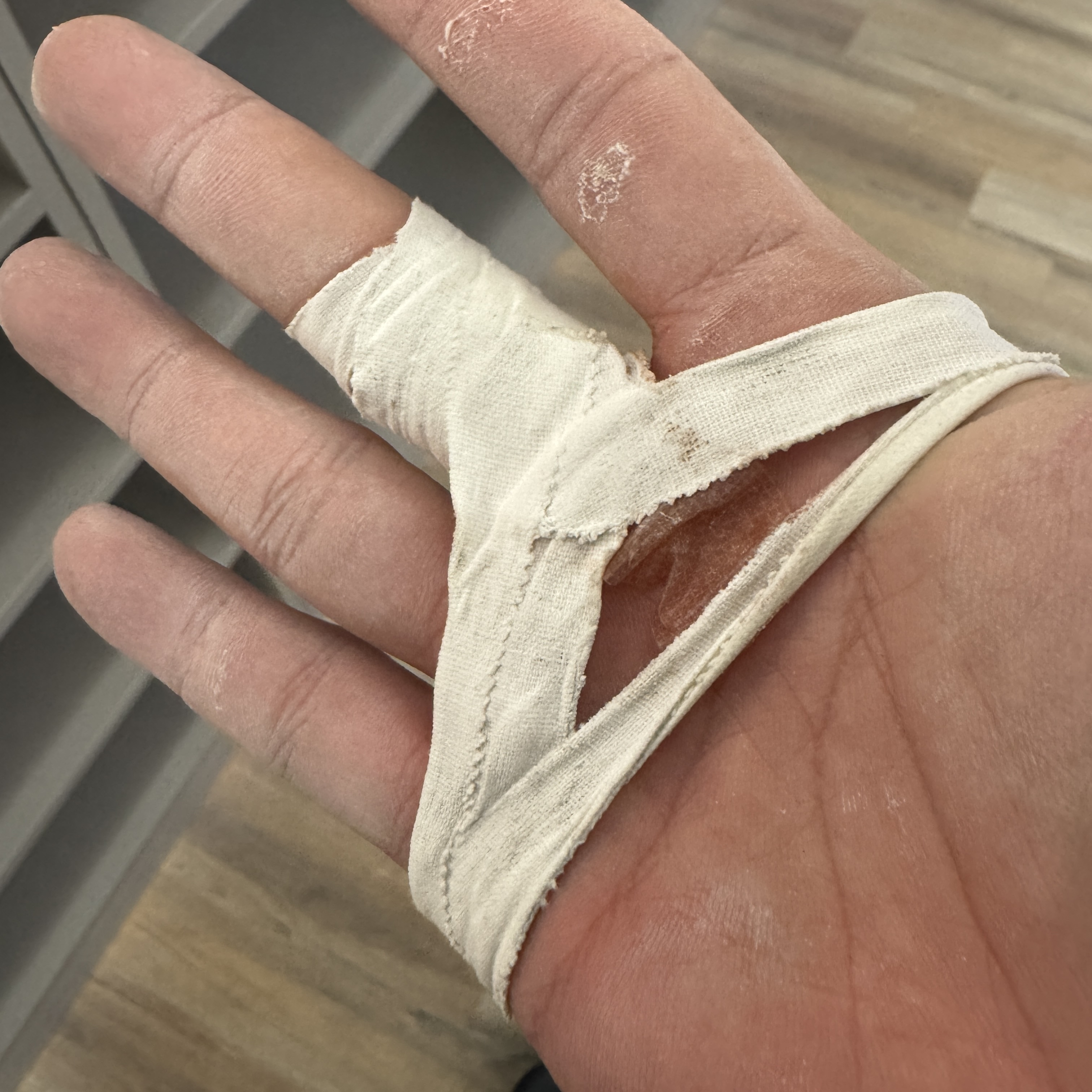 근데 아무래도 손가락과 손바닥 사이 부분은 계속 접히는 부위다 보니 굳고 난 다음에 해당 부위는 갈라지더라. 그래서 어쩔 수 없이 반창고 붙이고 테이프로 감아야 문제 없이 손을 쓸 수 있어. 어쩔 수 없지. 테이프 감은 거 보면 내가 배구 선수 같아. ㅎ 운동 좋다고 해도 부상 당하지 않는 게 최우선. 그래도 관절 다치지 않은 게 어디냐며.