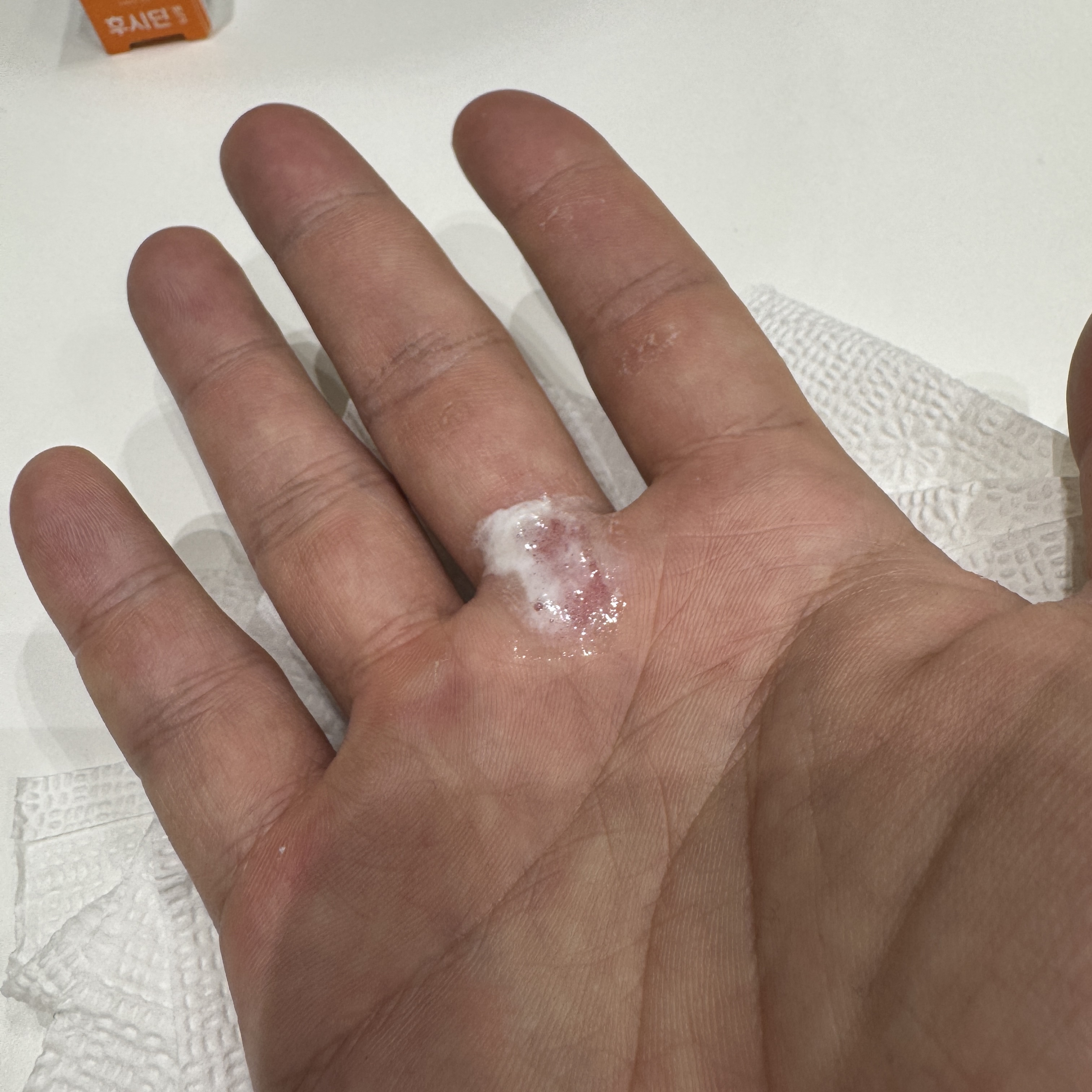 집에 포비돈(빨간약)이 없어서 사무실에서 직원들한테 얘기했더니 확실히 병원에 있던 친구들이라 그런지 다 갖고 있네. 그러면서 하는 말이 여기다가 알콜로 소독하면 어떻게 하냐고. 어쩐지 엄청 따갑더라 했다. 그래서 과산화수소수로 소독을 해준다.