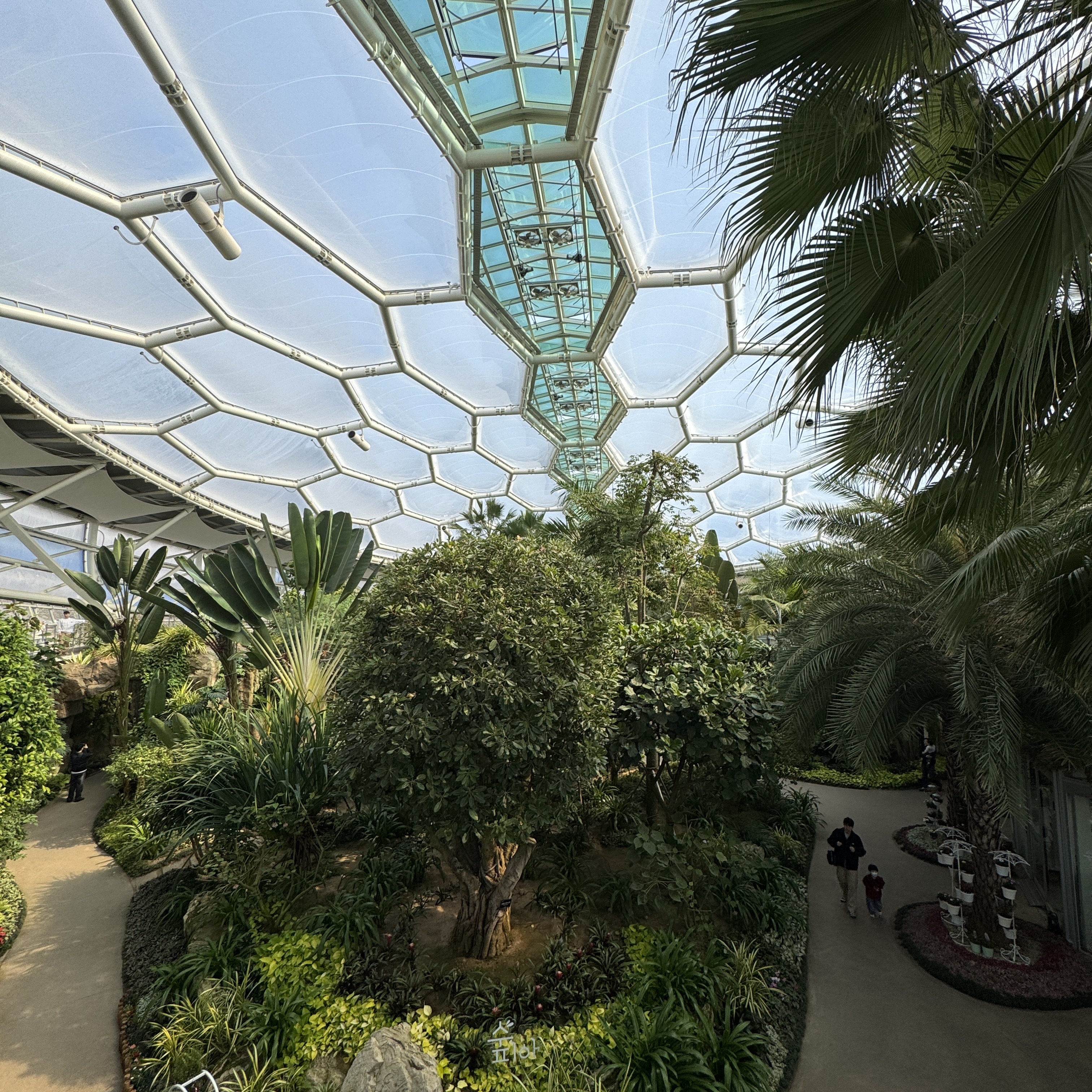 식물원을 많이 안 다녀봐서 모르겠는데, 식물원은 천장이 다 이런가? 투명한 유리로 벌집 모양? 아니면 이걸 운영하는 게 지자체다 보니 지자체 공사를 한 업체에서 땄나? 우리 서울식물원도 했다. 그렇게 입찰해서? 똑같이 생겼네. 이게 효율성이 좋아서 그런 건지. 이유를 모르겠다. 아들과 함께 갔으니 당연히 입장료 무료.
