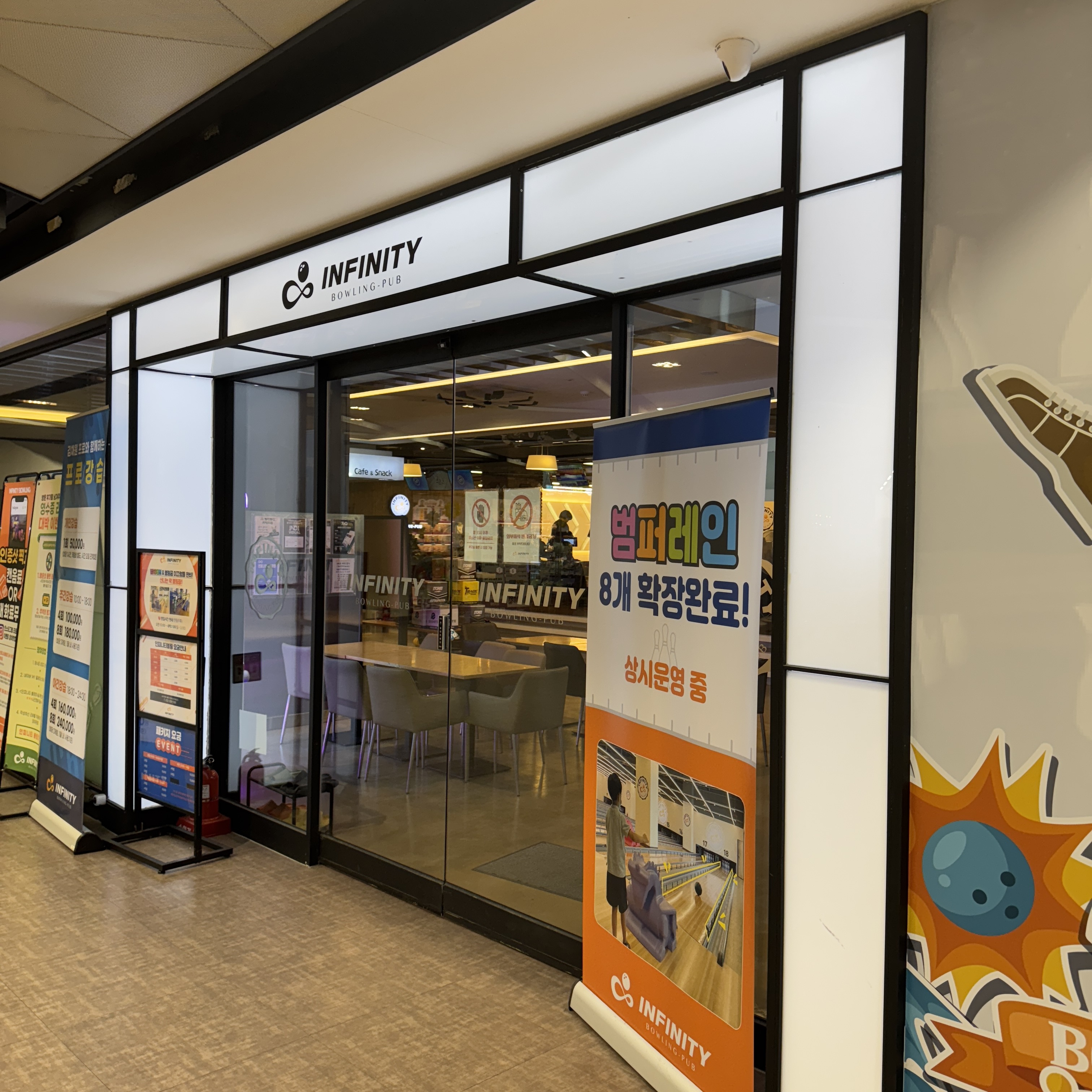 요즈음 아들이 볼링에 관심을 갖네. 탁구는 그래도 어렸을 때 배워서 나보다도 잘 치는 편인데(내가 탁구는 못 치긴 하지만 다른 사람들과 치는 거 보면 좀 치긴 하더라.) 볼링장 최근에 가서 120점 114점 나왔다고 치러가자는 거다. 그 점수로는 아빠 못 이길텐데. 그래도 아빠 한 때는 에버리지 150 정도는 나왔었는데 말이지. 그래서 부천에 온 김에 폭풍 검색해서 갔더니 볼링장 임대료 체불로 인해 막아뒀네. 그래서 다시 폭풍 검색해서 찾은 인피니티 볼링장.