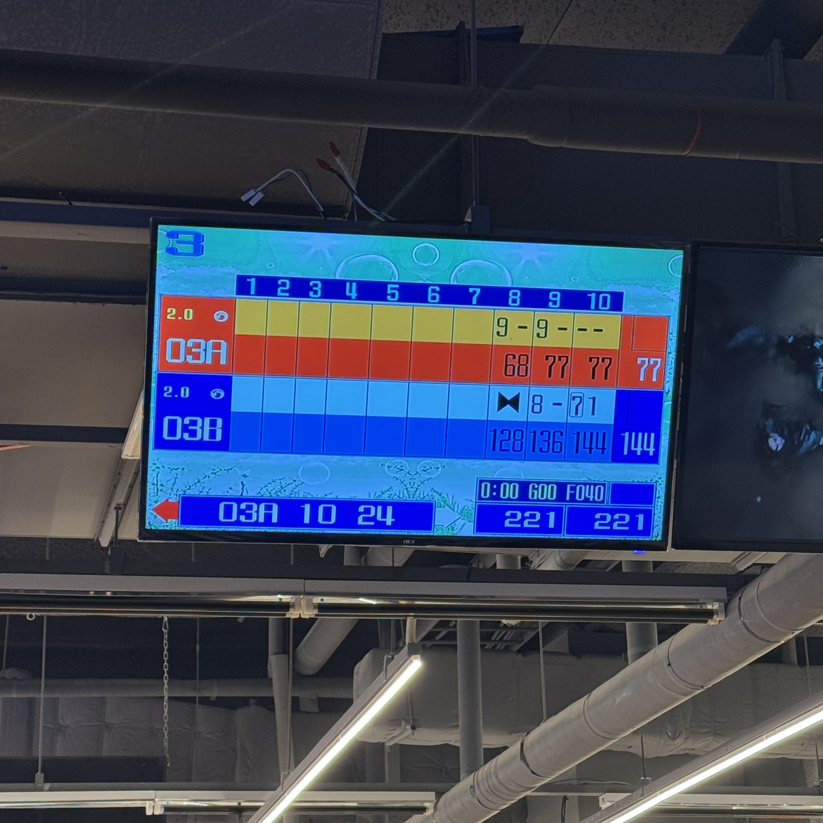 두 게임만 쳤다. 이유는? 아들이 손가락 아파서 치기 힘들 거 같다고 해서. 그게 왜 그러냐? 자세가 올바르지 못해서 그래. 볼링공을 던지려고 하잖아. 굴려야지. 그리고 어떤 기교를 쓰는 게 아닌 이상 일반인들 레벨에서는 그냥 일자로 중앙에 굴리면 돼. 120? 114? 70점대 나오더만. 내가 던지는 폼 보고 안 배우면 항상 그런 점수 받는 게 아니라 어쩌다 그런 점수 받게 된다고 배워야 한다고 했다.
