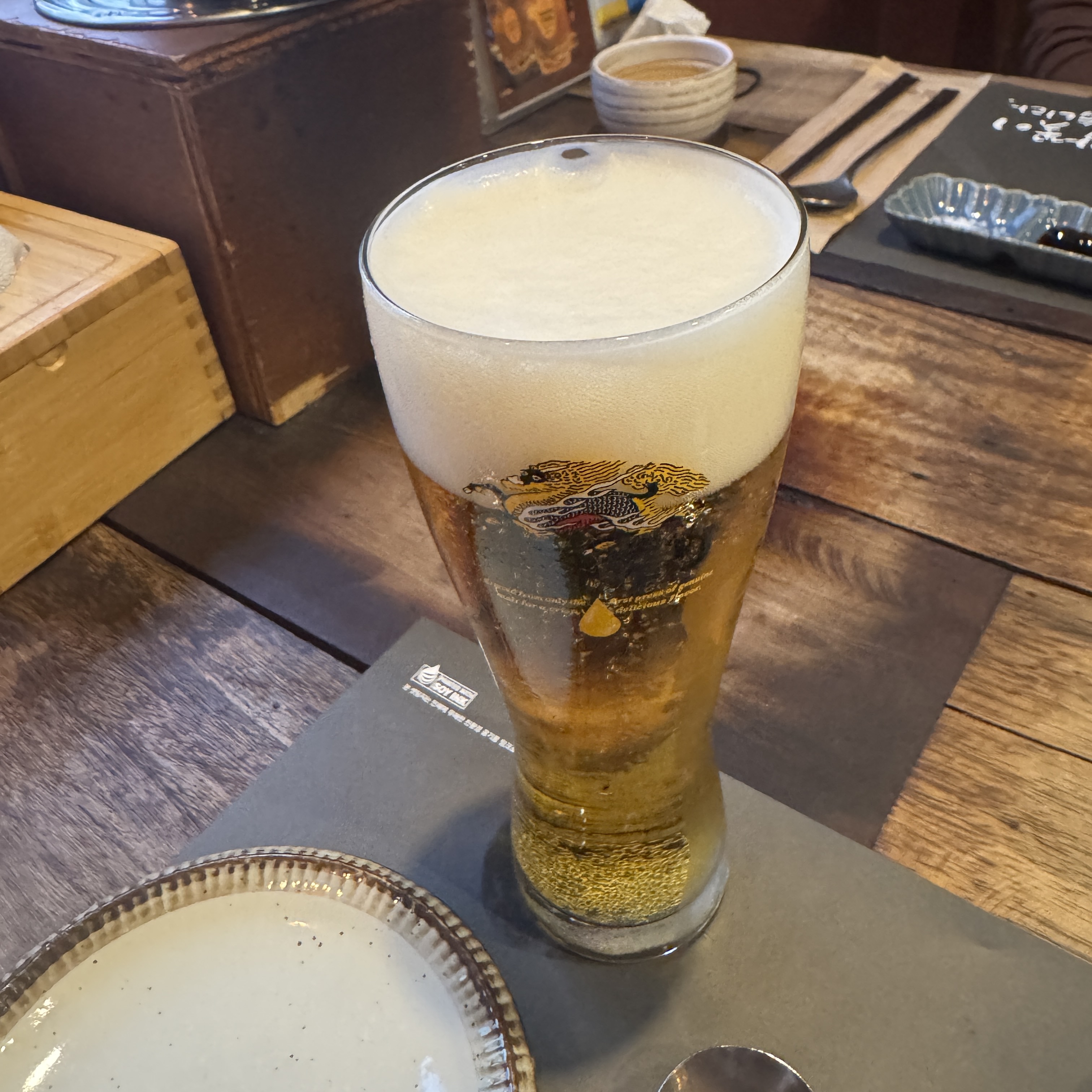 일단 밑반찬. 그리고 기린 생맥주 있길래 시켰다. 근데 맛은 잘 모르겠음. 이게 컨디션에 따라 맛이 달라지는 것도 있긴 해서 뭐라 말하기가 좀 그렇네.