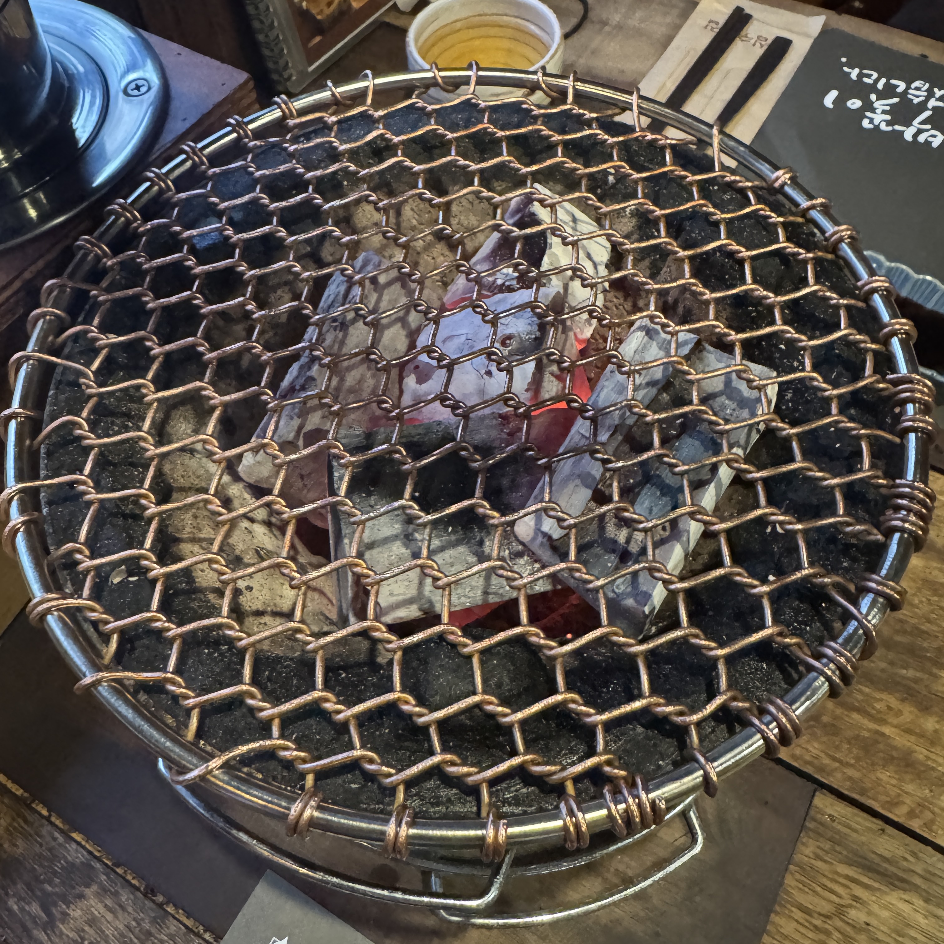 숯불 올려지고 고기 나왔다. 세트로 시키면 여러 부위가 나와서 꽃갈비 2인분이랑 갈비본살 2인분 시켰다. 2인분이지만 100g/인 이라 4인분이라기 보다는 2인분이라고 보면 될 듯.