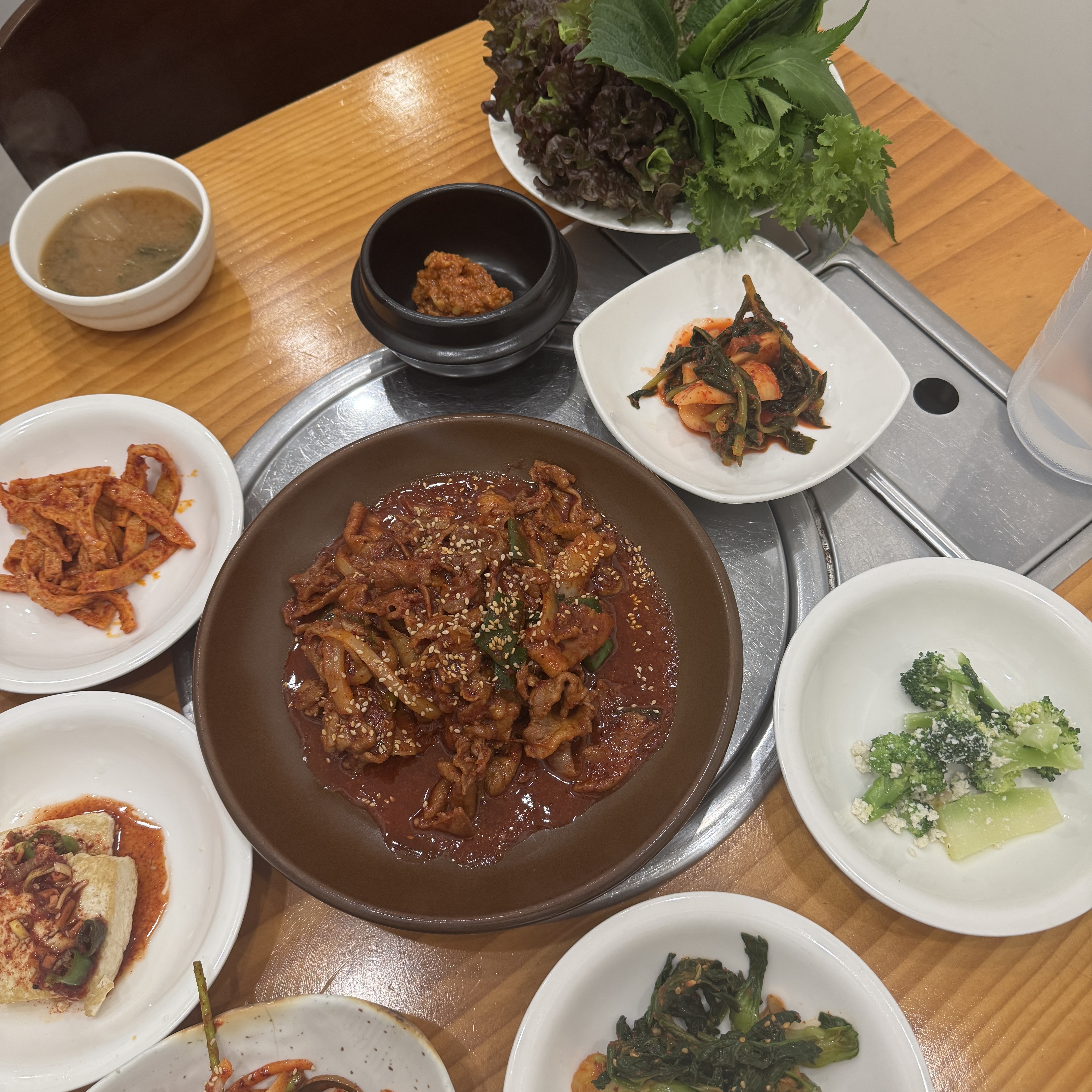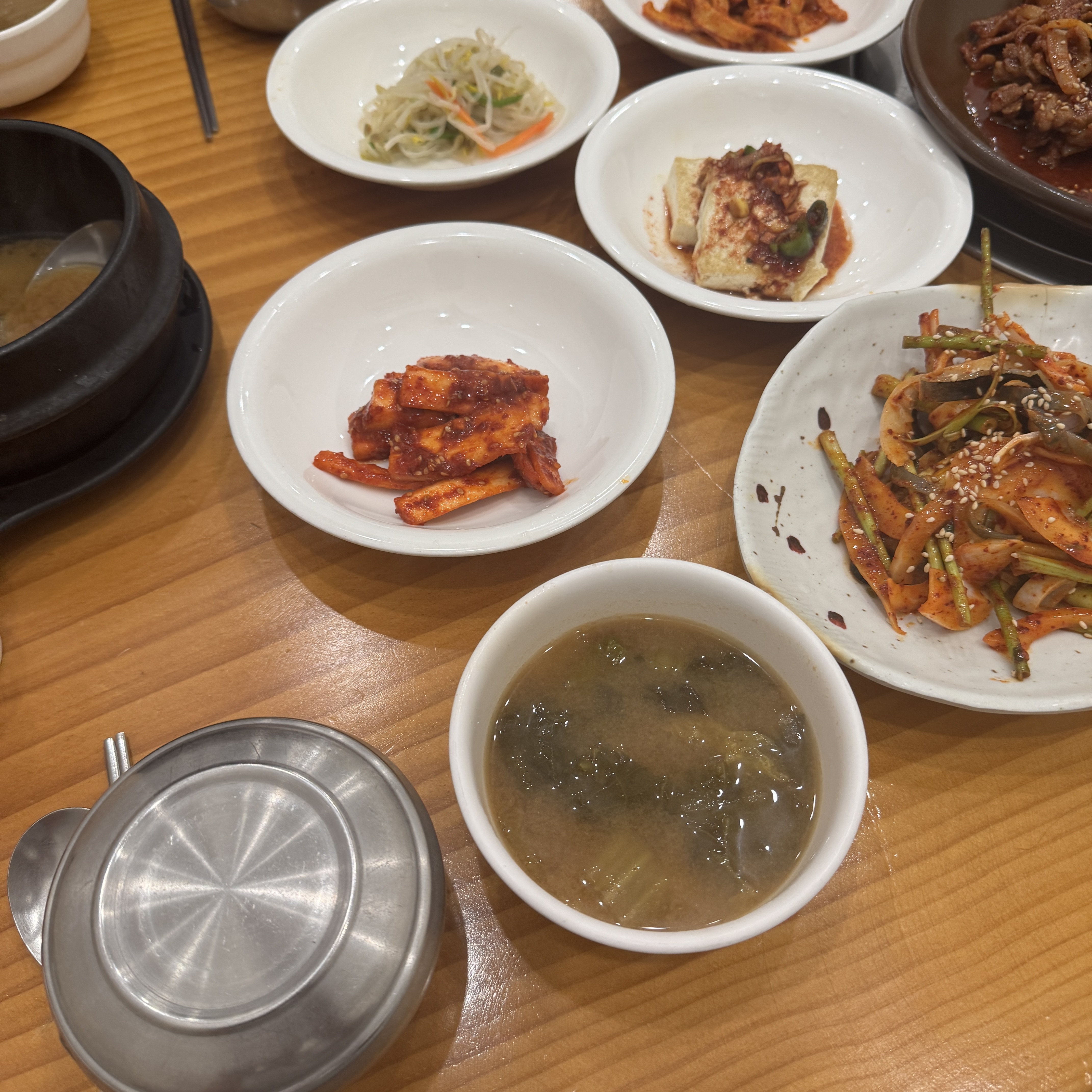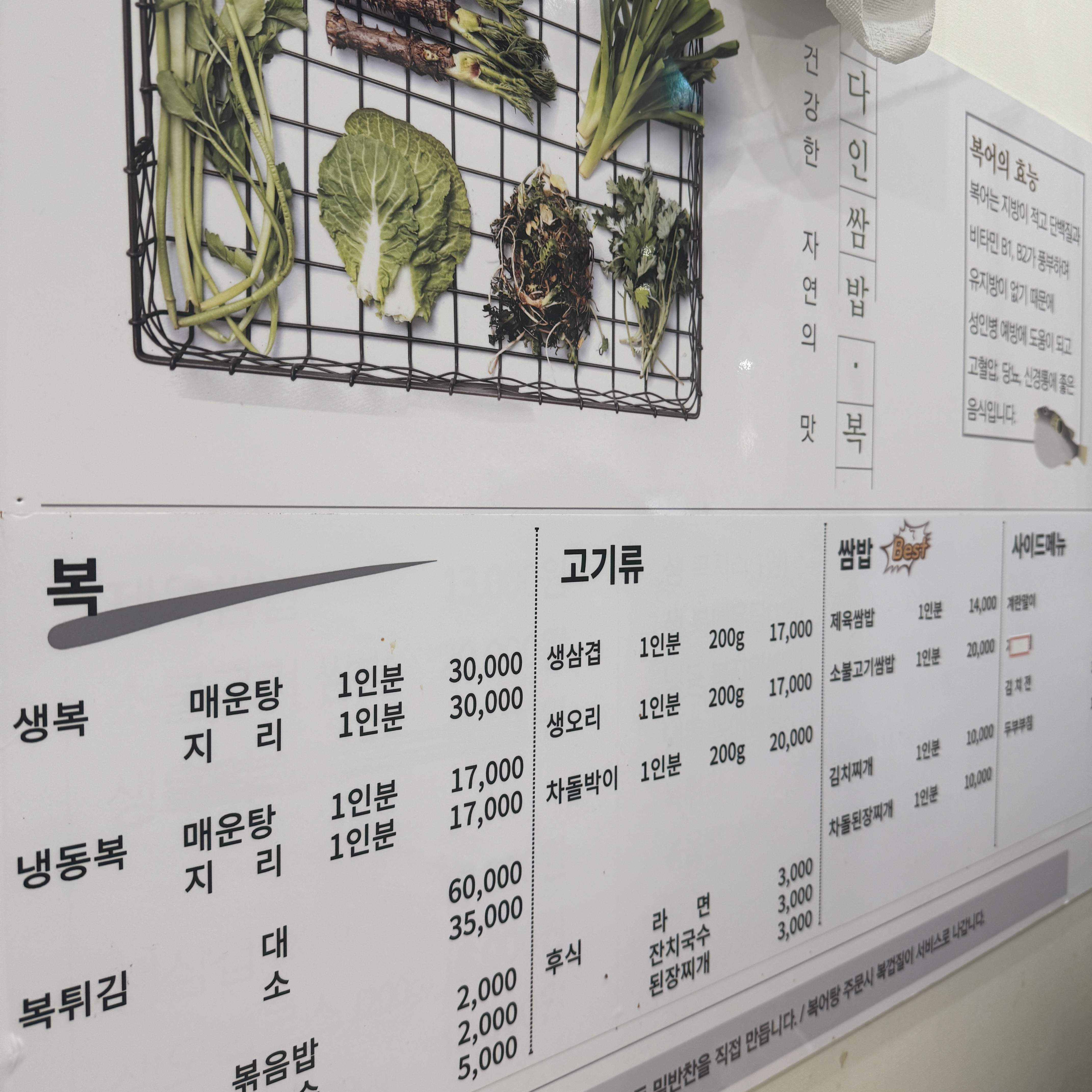 여기 메인이라는 건 음식점명에도 나와 있듯, 쌈밥이랑 복 요리다. 복을 먹는 사람은 본 적이 없는 거 같고, 쌈밥 먹는 사람은 많다. 나는 주로 점심 식사로 차돌된장찌개 주로 먹는데, 가끔씩 제육쌈밥 먹는다. 제육쌈밥도 맛있지만 일단 이 집은 찬이 맛있어서 좋다.