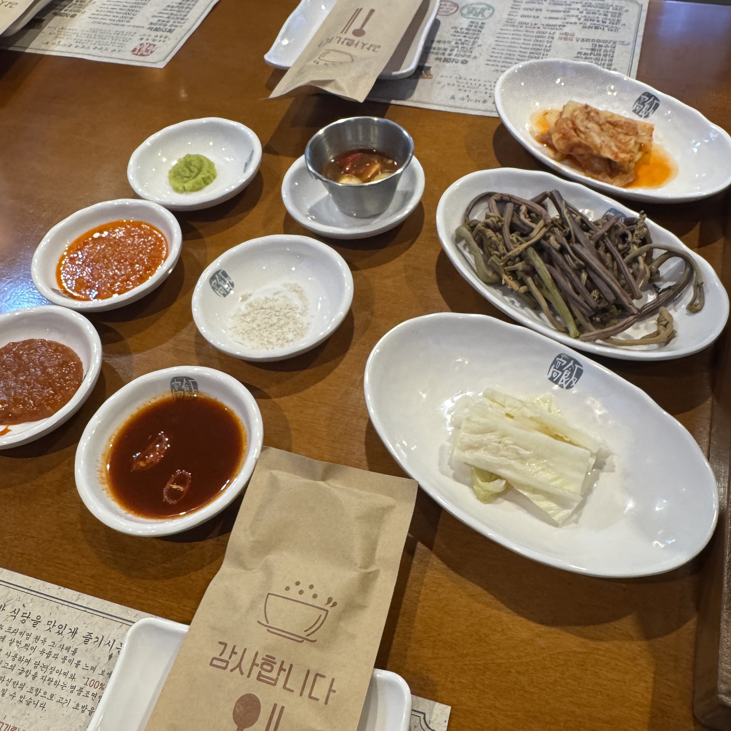 장소는 내가 골랐다. 아무래도 고기를 먹어야하지 않겠나 했는데, 인근에는 딱히 맛있는 데가 없어서 차를 타고 좀 가야하긴 하지만 여기 괜찮을 듯 해서 간 데가 신분당선 상현역 근처에 있는 고반식당. 회사는 광교중앙역이니 지하철 한코스지만 내 차 끌고 갔다. 가보니 주인 아저씨의 고기 부심이 남다르더라. 좋은 고기 쓴다고 먹어보라고 다를 거라고. 여튼 밑반찬 정갈하게 나온다.