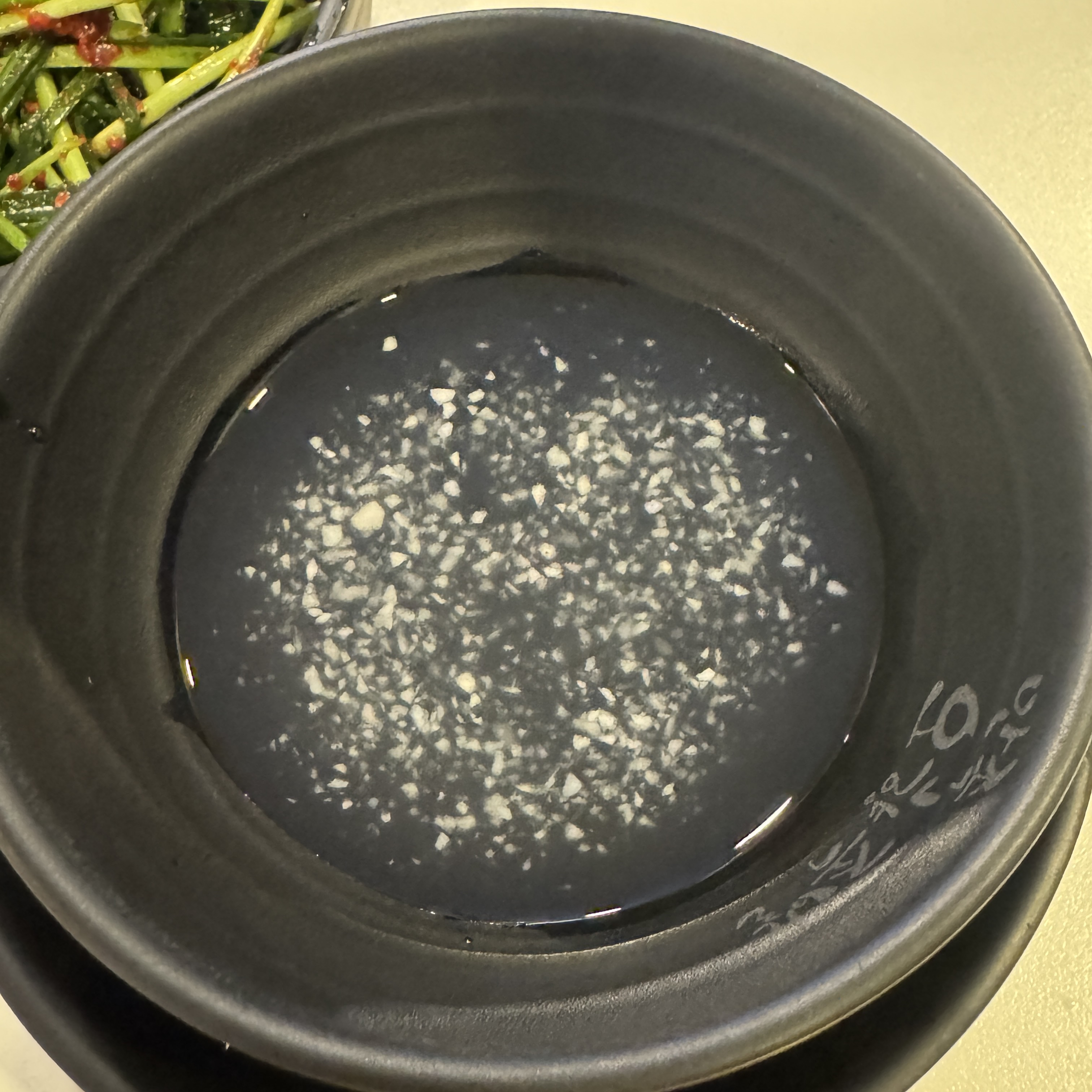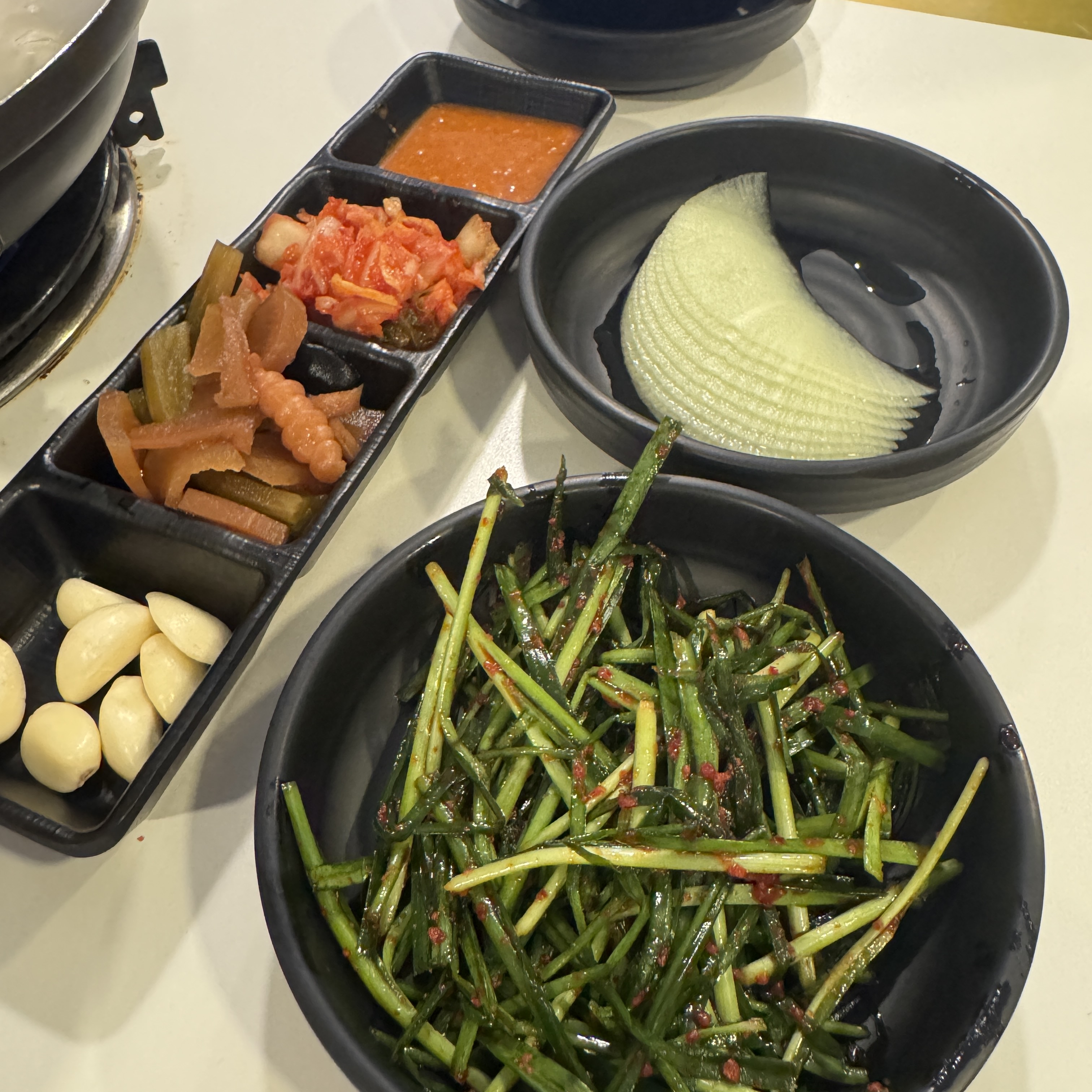 기본 찬이다. 부추가 나오더라. 그리고 만두는 서비스. 조그만 만두라 먹을 건 별로 없어.