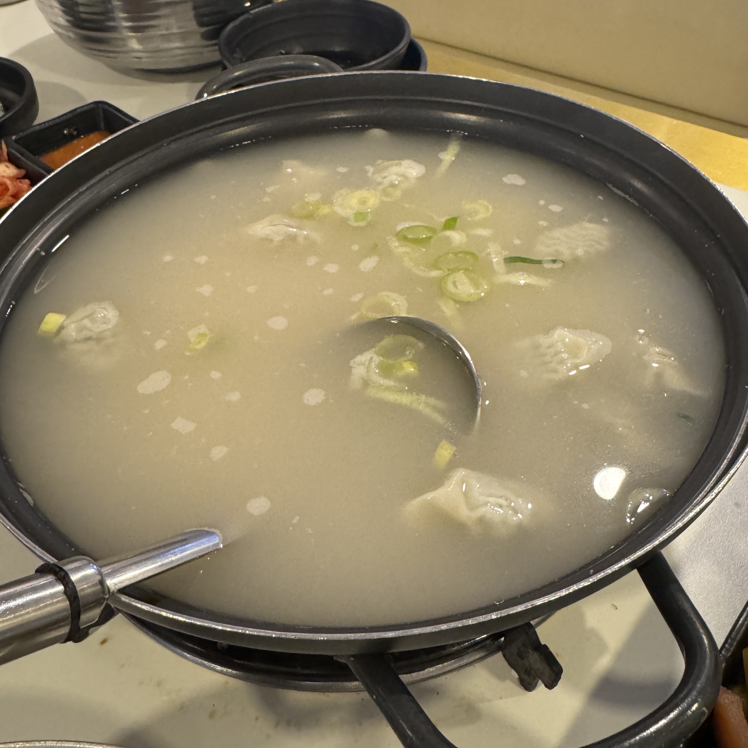 기본 찬이다. 부추가 나오더라. 그리고 만두는 서비스. 조그만 만두라 먹을 건 별로 없어.
