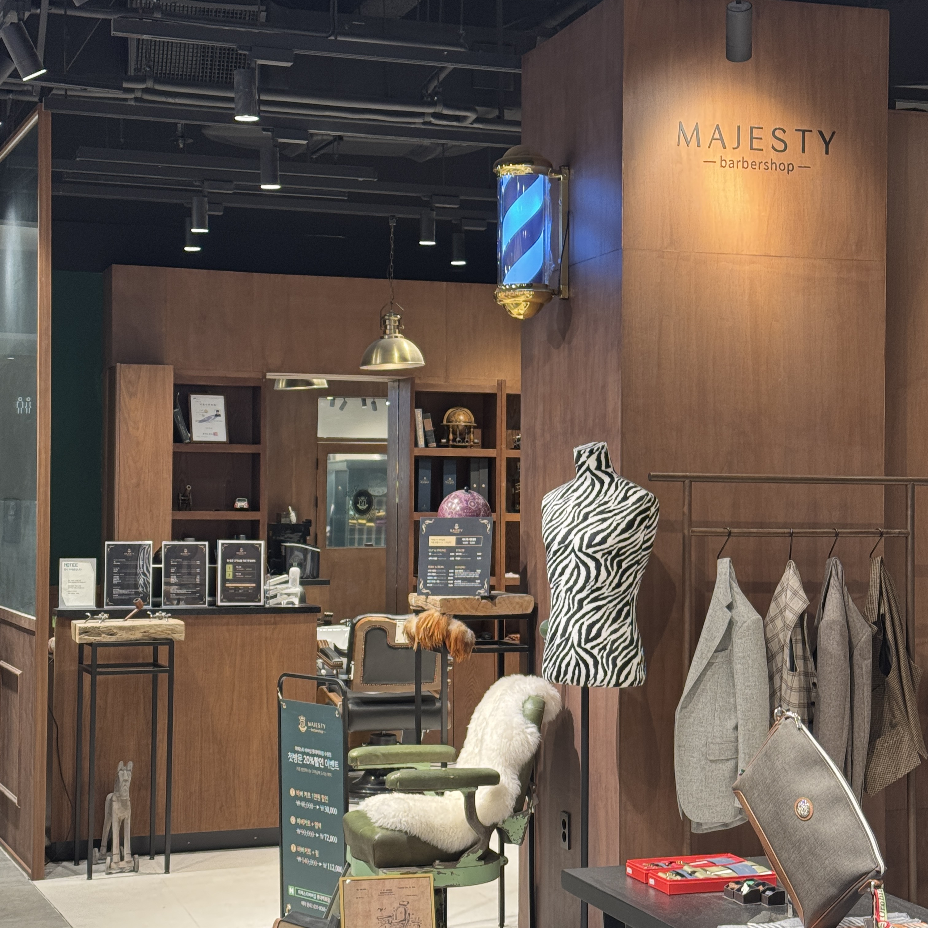 옷 가게 사이로 있는 마제스티 바버샵. 보니까 프랜차이즈던데, 대부분 백화점과 같은 데에 입점한 형태더라. 수지 타산이 맞나 싶어서 물어봤는데 그래도 고정 고객 확보하고 나니까 괜찮다고 하더라. 커트는 4만원인데, 첫 고객의 경우에는 20% 할인해서 3만원에 해주더라. 3만원이면 25% 할인인디.