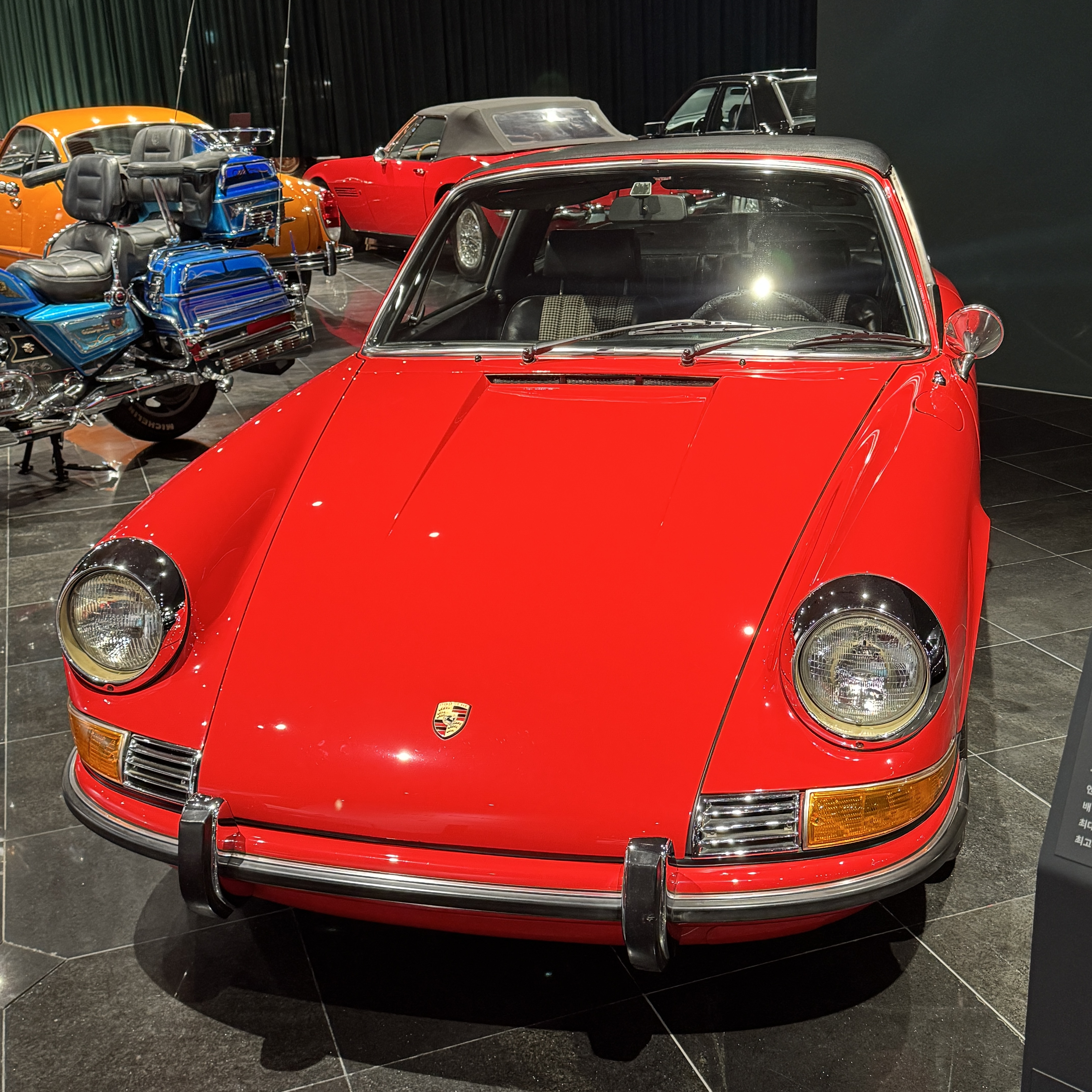 마지막은 디자인만 봐도 무슨 차인지를 잘 나타나는 포르쉐다. 모델명은 지금도 출시되는 911S 타르가. 타르가는 뒷유리창 쪽을 봐야 하는데, 그건 사진을 안 직어뒀네. 설명을 읽어보니 911이라 명명된 게 원래는 901이었는데, 푸조와 상표권 분쟁으로 인해 911로 변경된 거더라.