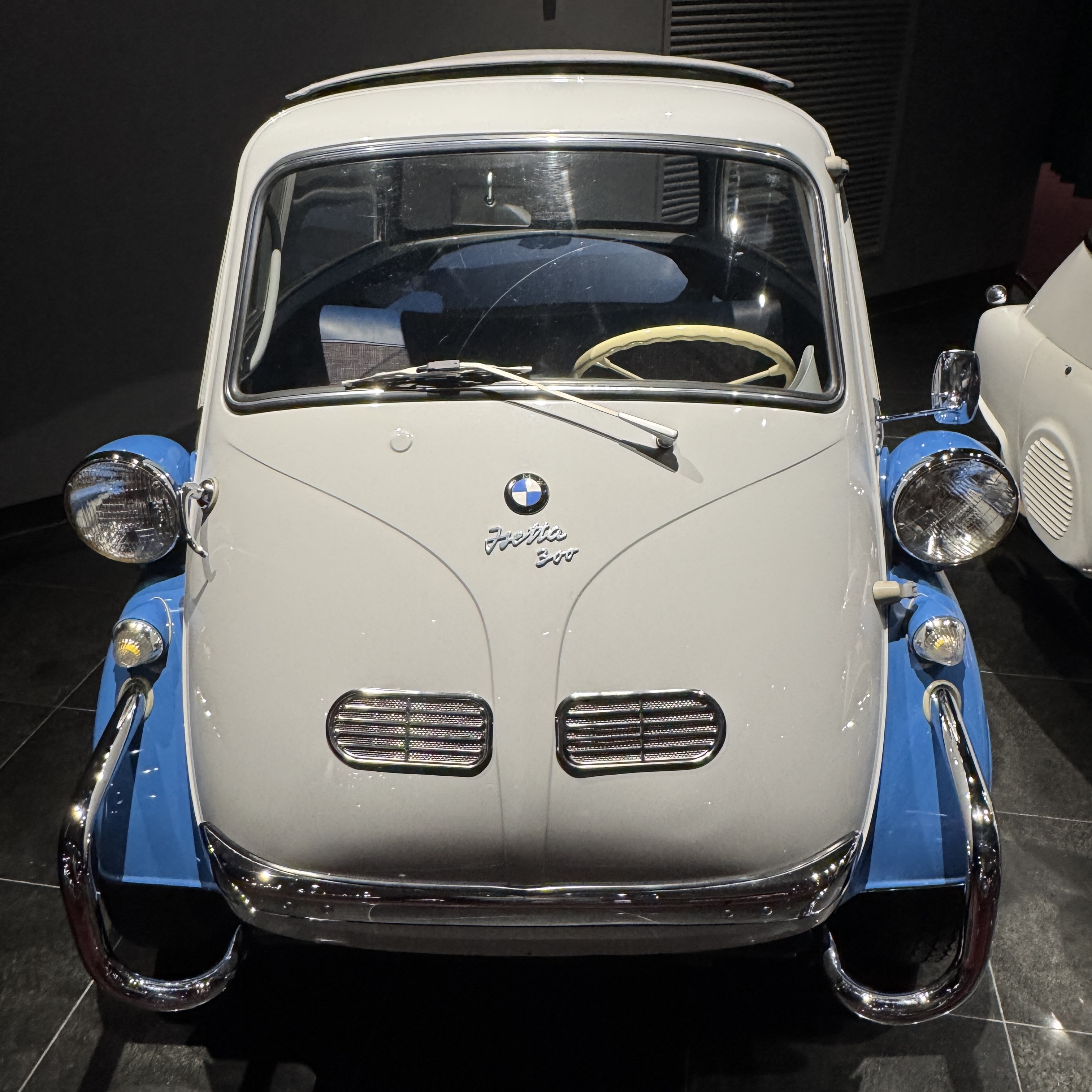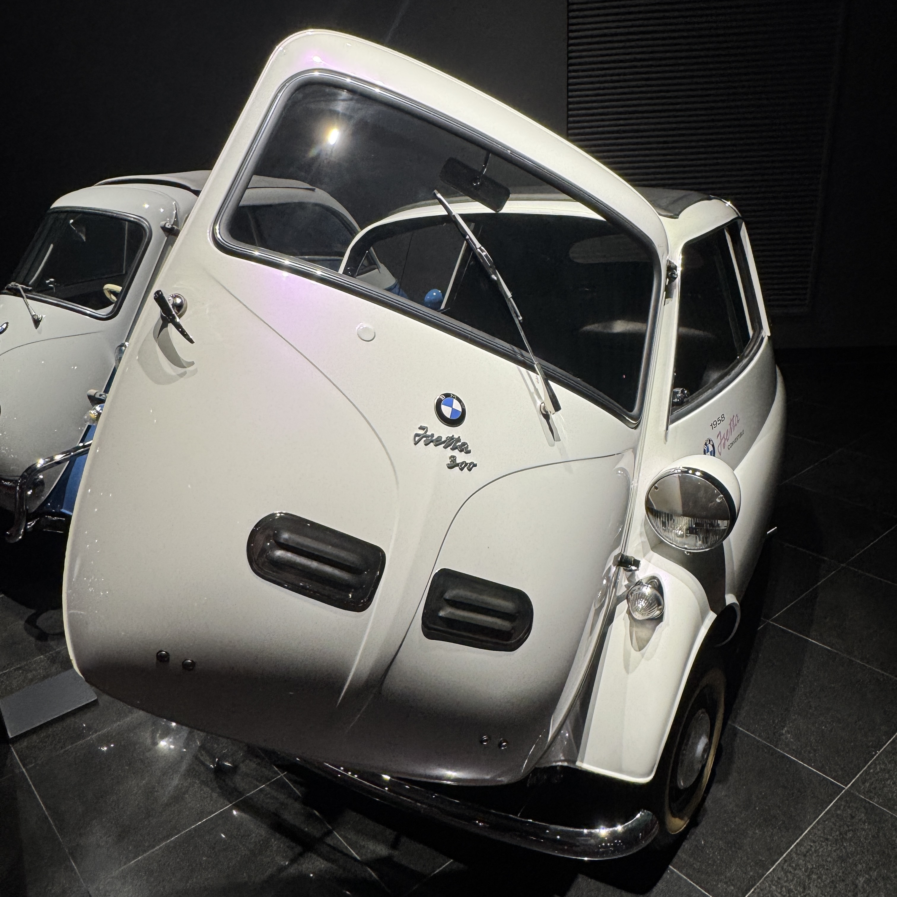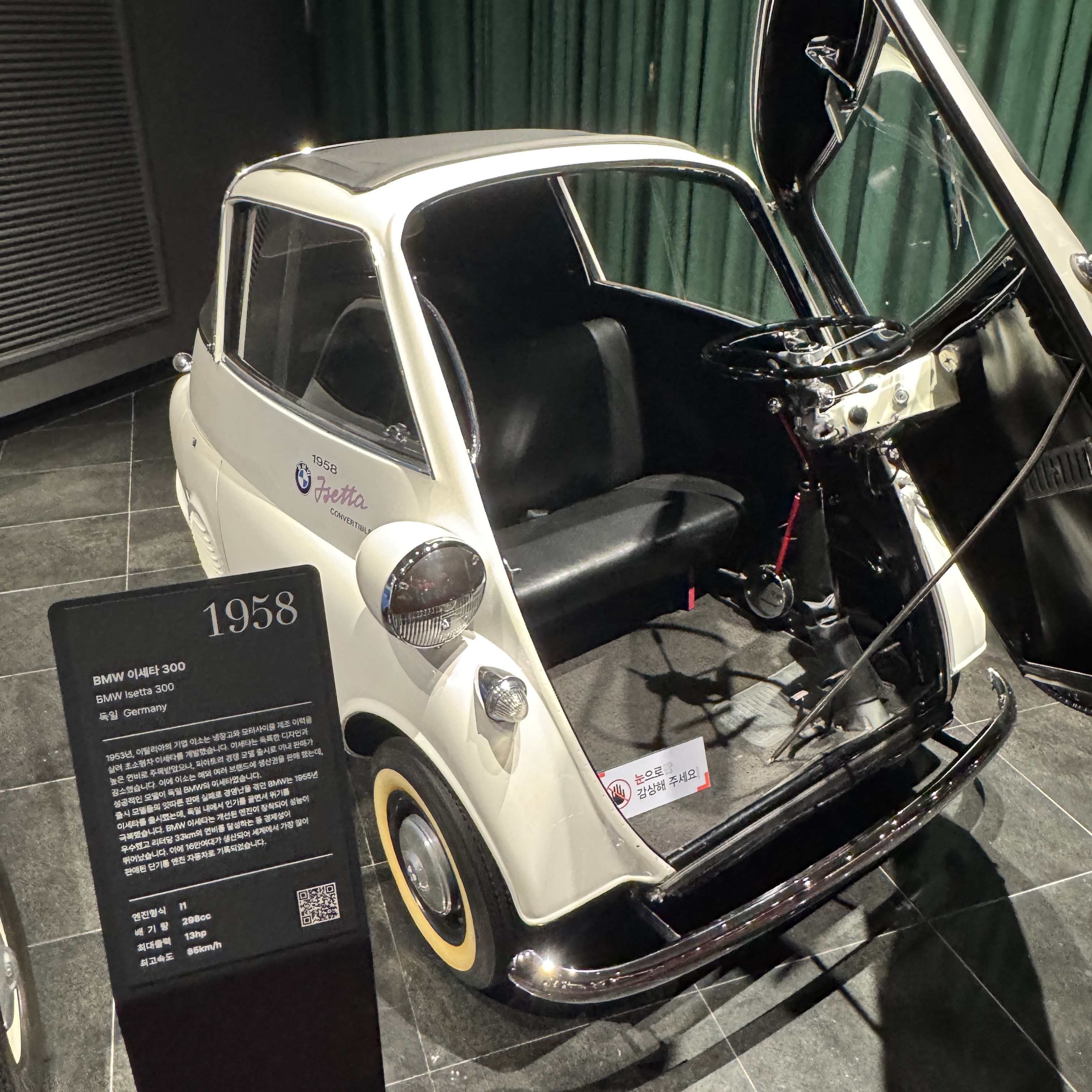 그리고 오래 전에도 이렇게 작은 1인용 차가 있었구나. 1950년대 출시된 BMW 이세타 300이란 모델인데, 크기며, 도어가 앞으로 열리는 거며, 도어에 핸들이 달려 있는 것 등이 지금 봐도 특이하다. 생각보다 많이 판매되었다고.