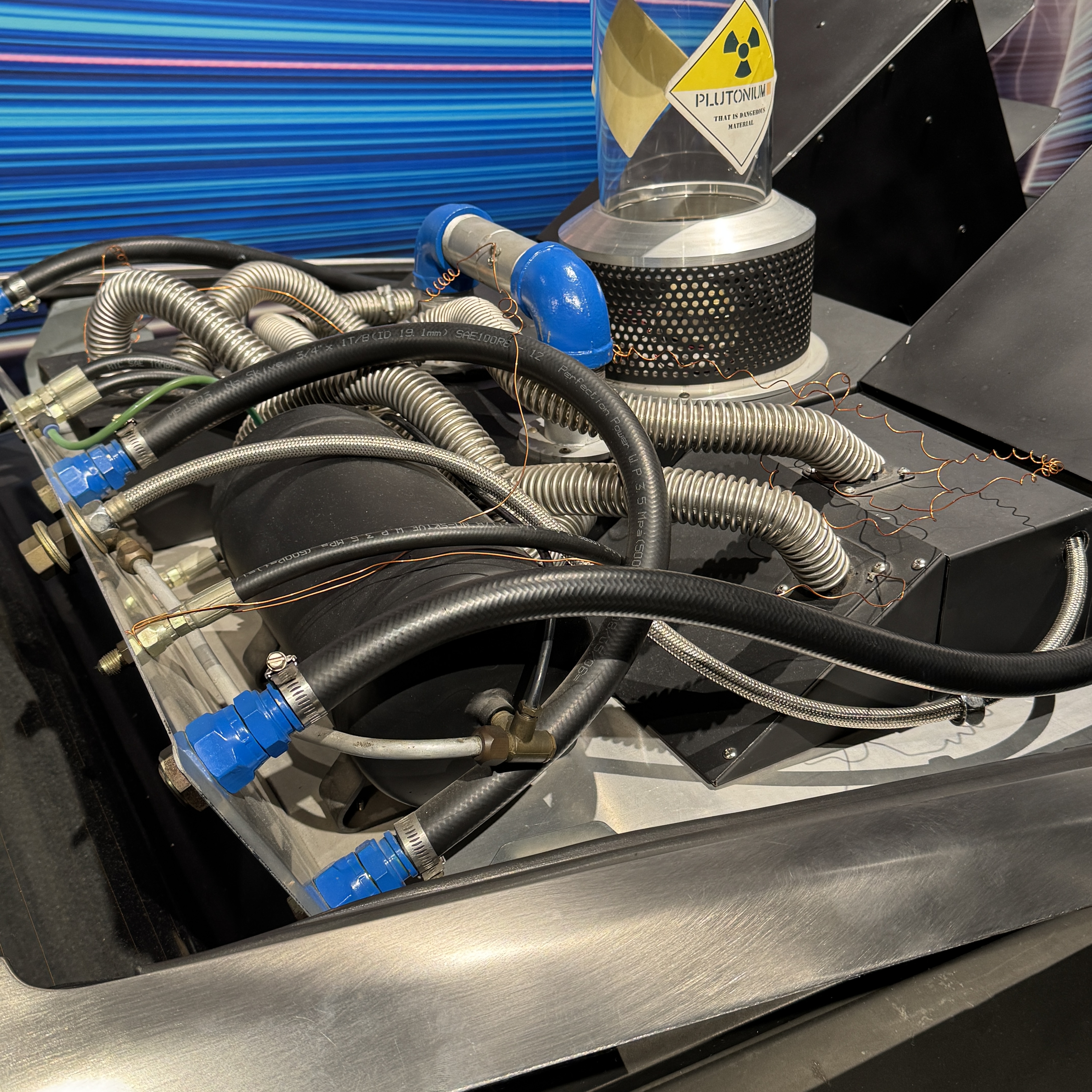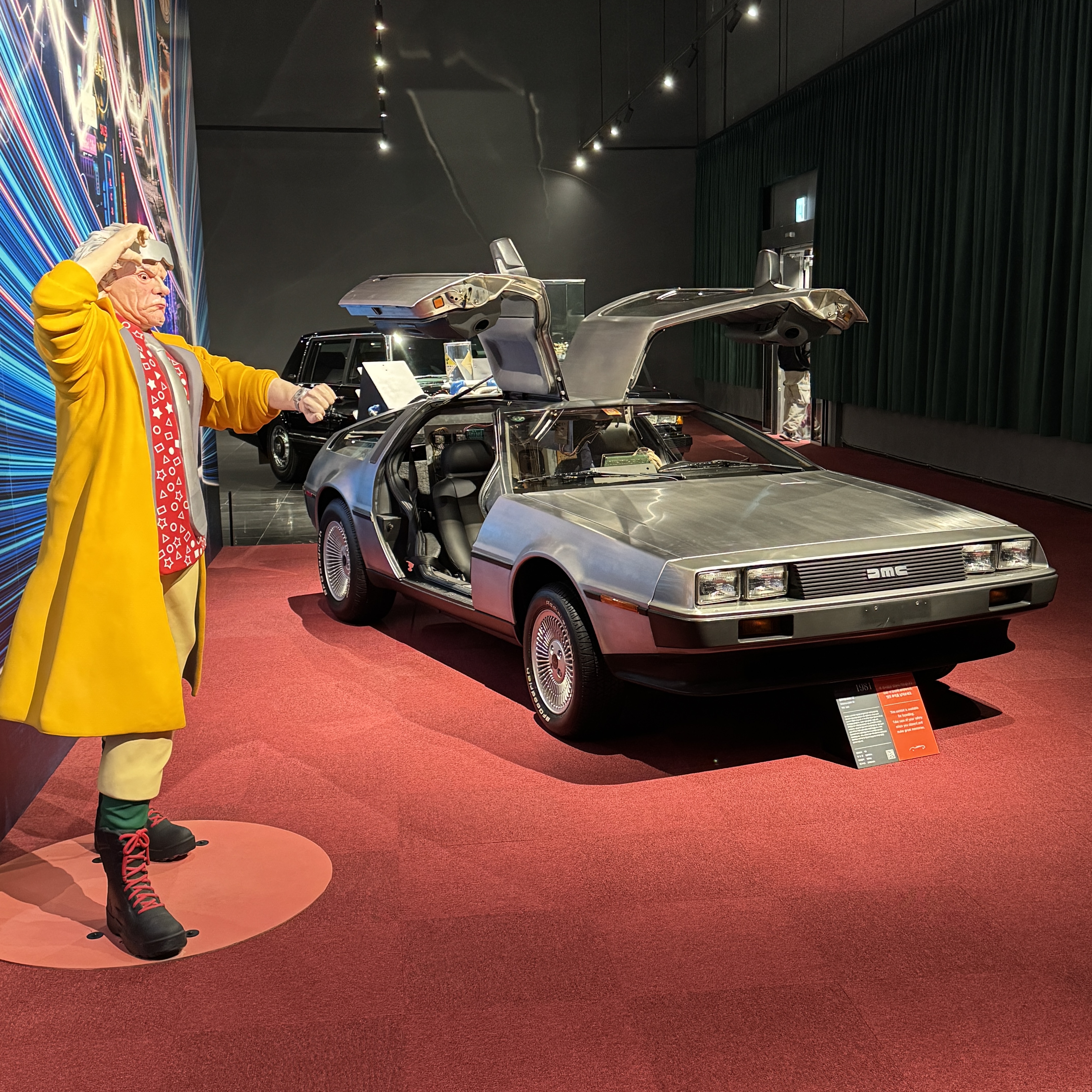 요즈음 세대는 모르겠지만 우리 세대면 다 알만한 '백 투 더 퓨처'의 그 타임머신 차, 들로리안이 전시되어 있었는데, 오리지널이 아닌 카피품이겠지만 그런다 해도 좀 조악한 느낌?