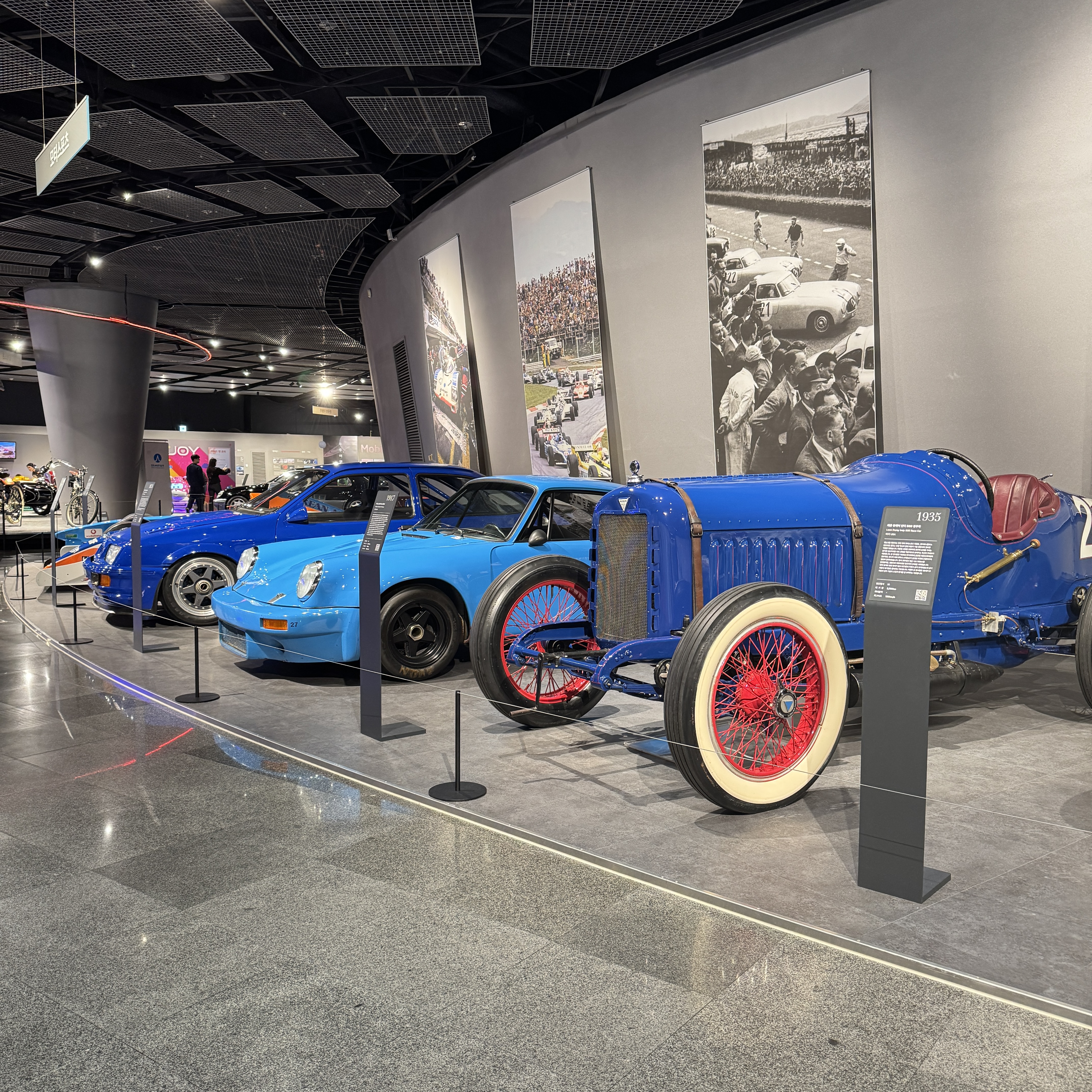 구경의 시작은 1층 오래된 차량부터. 눈에 띄는 건 파란색 포르쉐 911. 모든 차량의 히스토리를 다 읽어본 건 아니지만 내가 전시 관람하듯 다 읽으면 시간 꽤나 잡아먹겠더라. 희귀한 모델이긴 한데, 차량의 상태를 보니 폐차 직전의 차량에 페인트칠을 한 듯한 느낌이더라.