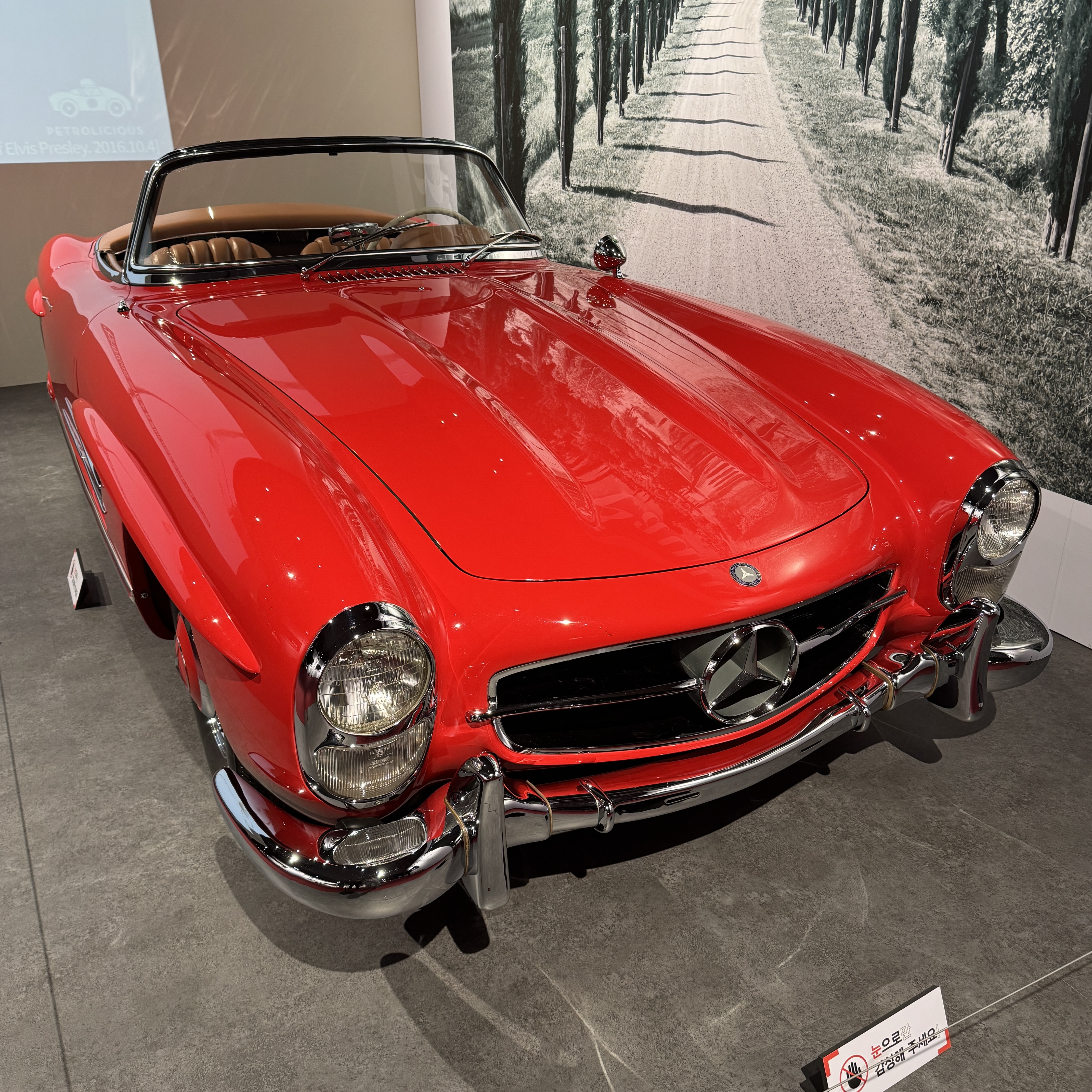 벤츠 300SL과 BMW 507 로드스터. 지금보면 그렇긴 하지만, 당시에는 얼마나 파격적인 모델이었을까. 시대순으로 차량들을 구경하게 되어 있다 보니까 알겠더라. 뚜껑도 없지, 2인승이지.