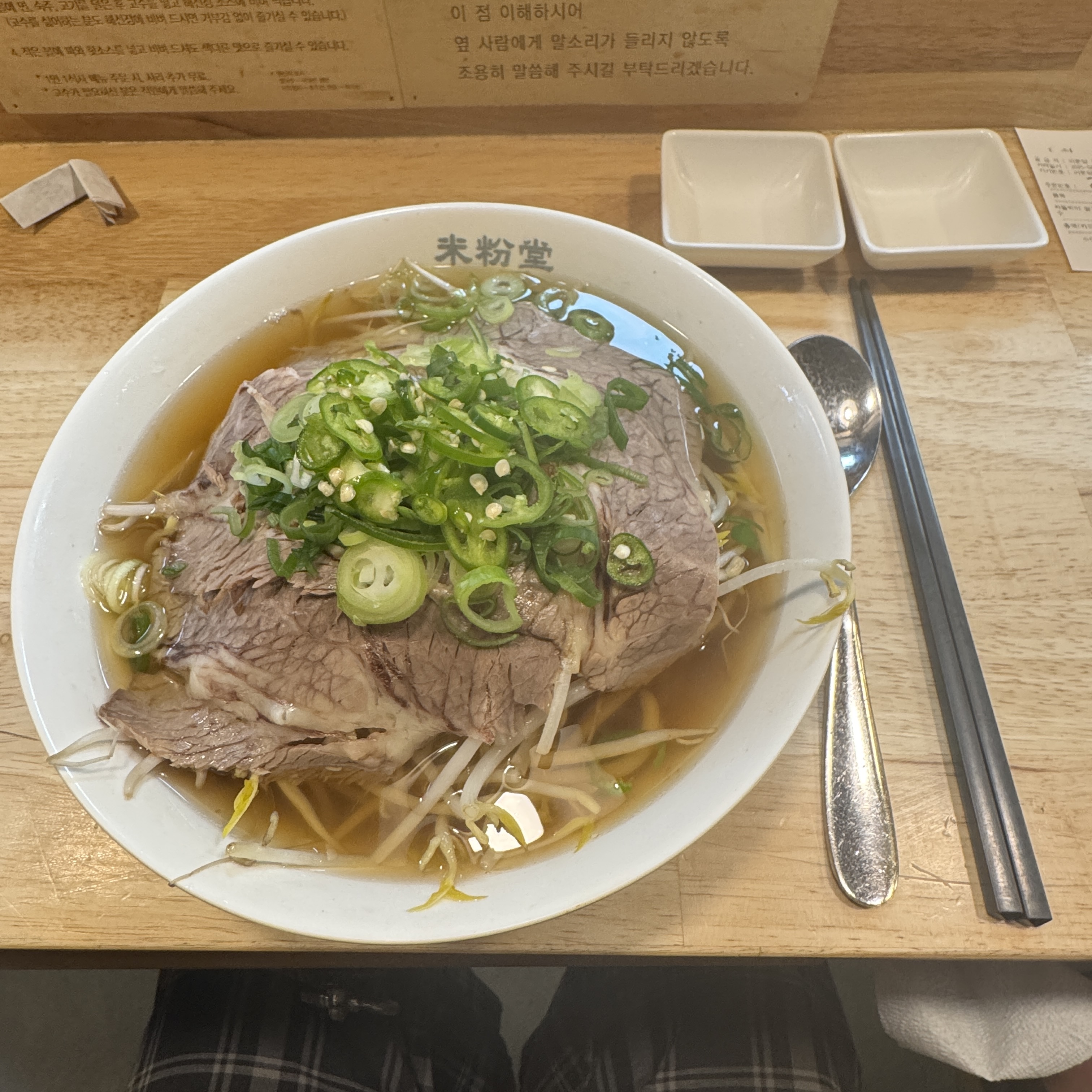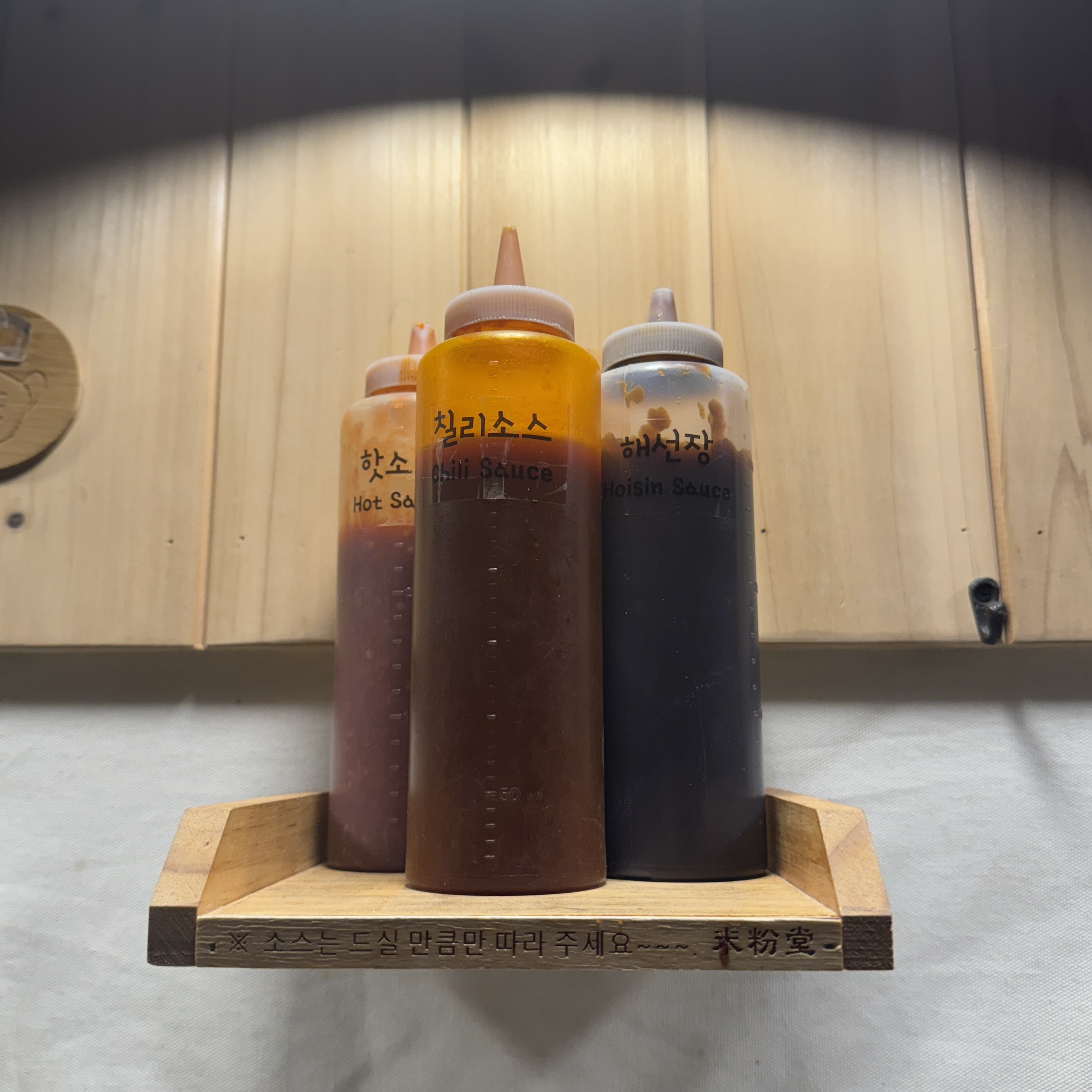 나는 차돌박이 쌀국수(가격 9,500원)를 시켰는데, 괜찮더라. 소스는 머리 위에 보면 이렇게 칠리소스, 핫소스, 해선장 이렇게 놓여져 있다. 베트남 쌀국수 전문점인데, 분위기는 일본 식당 같은 느낌. 그래도 난 베트남 분위기보다 이런 데가 더 나은 듯 싶더라. 뭔가 정돈되고 깔끔한 느낌이라. 쌀국수도 그렇고.