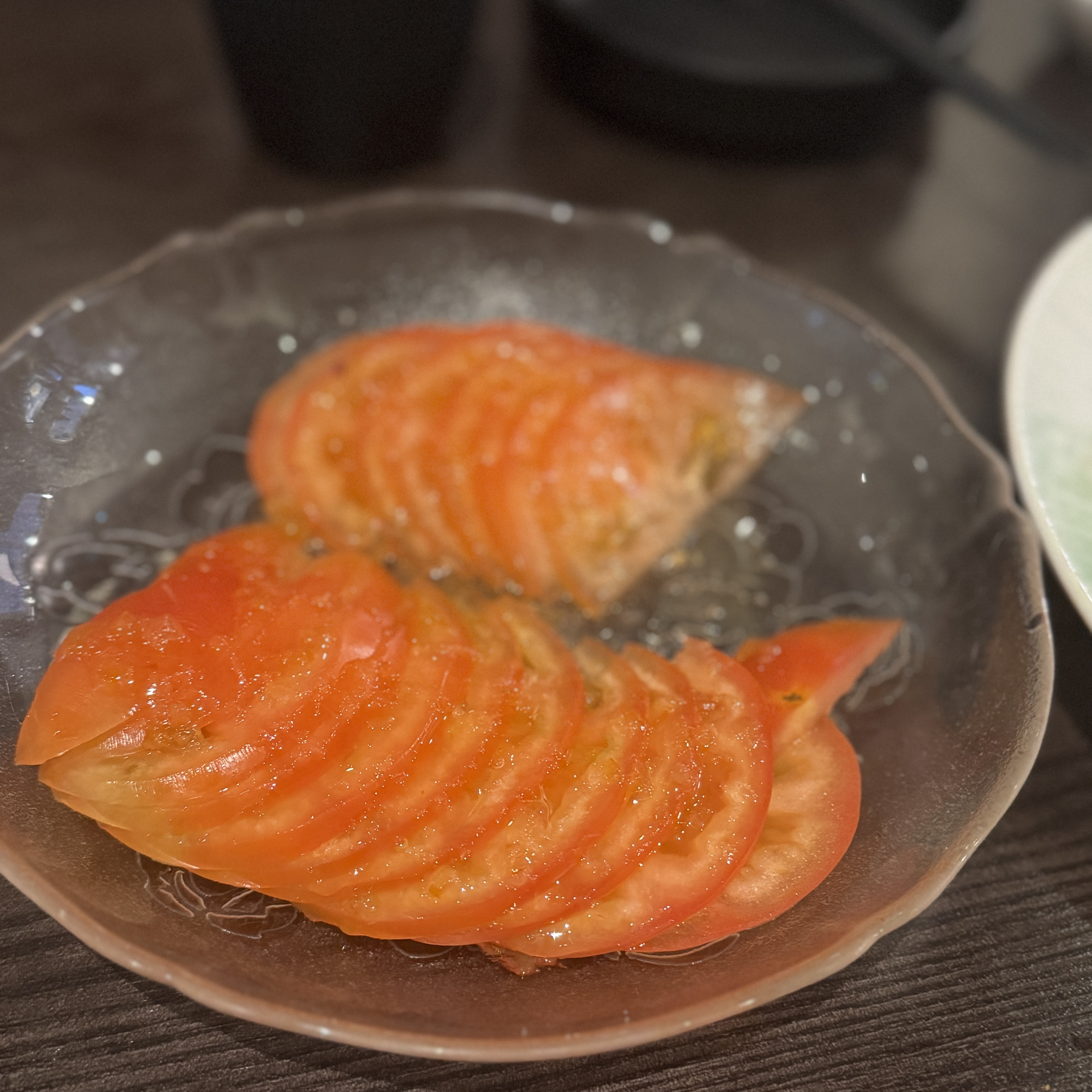 이건 서비스로 준 건데, 토마토에 뭔 소스를 뿌려서 줬는데 맛있다.