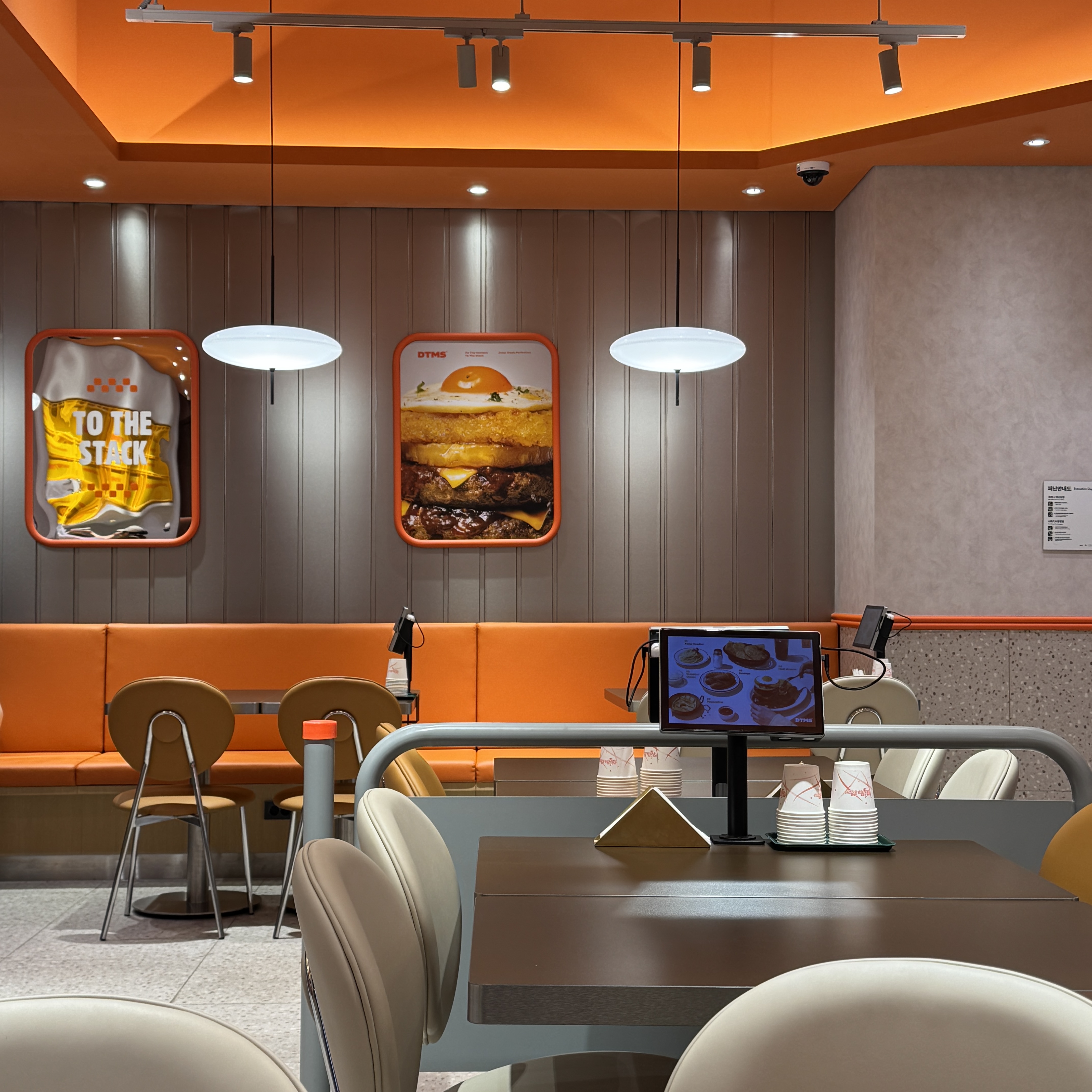 3층 엘리베이터를 나오자 보이는 두투머스 함박. 여기는 이용해보지 않았고, 함박이라 아들도 괜찮아할 거 같아서 가자고 해서 들어갔다. 인테리어가 주황색으로 되어 있어 좀 영한 느낌?
