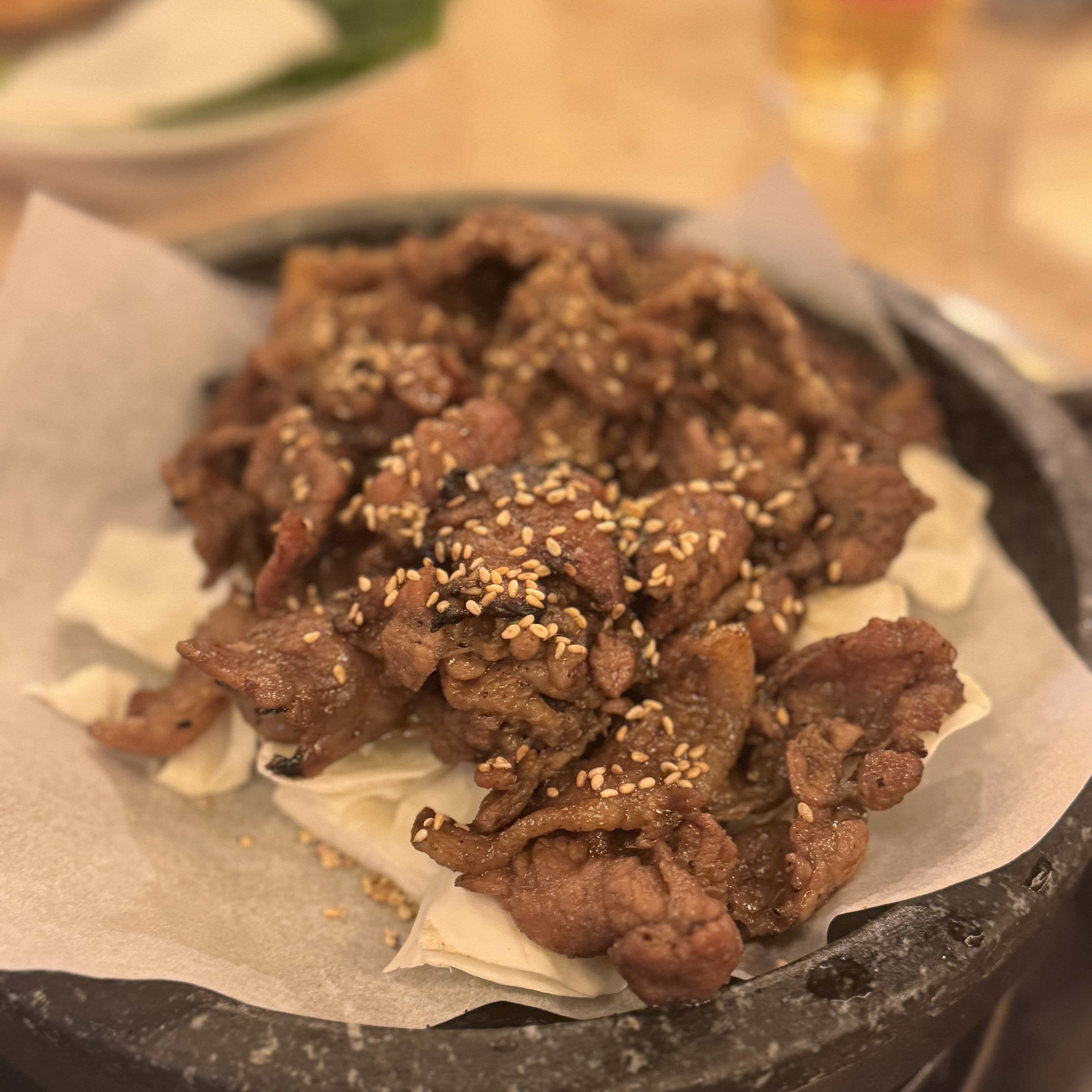 연탄 돼지불고기랑 연탄 고추장불고기 두 종류 있더라.