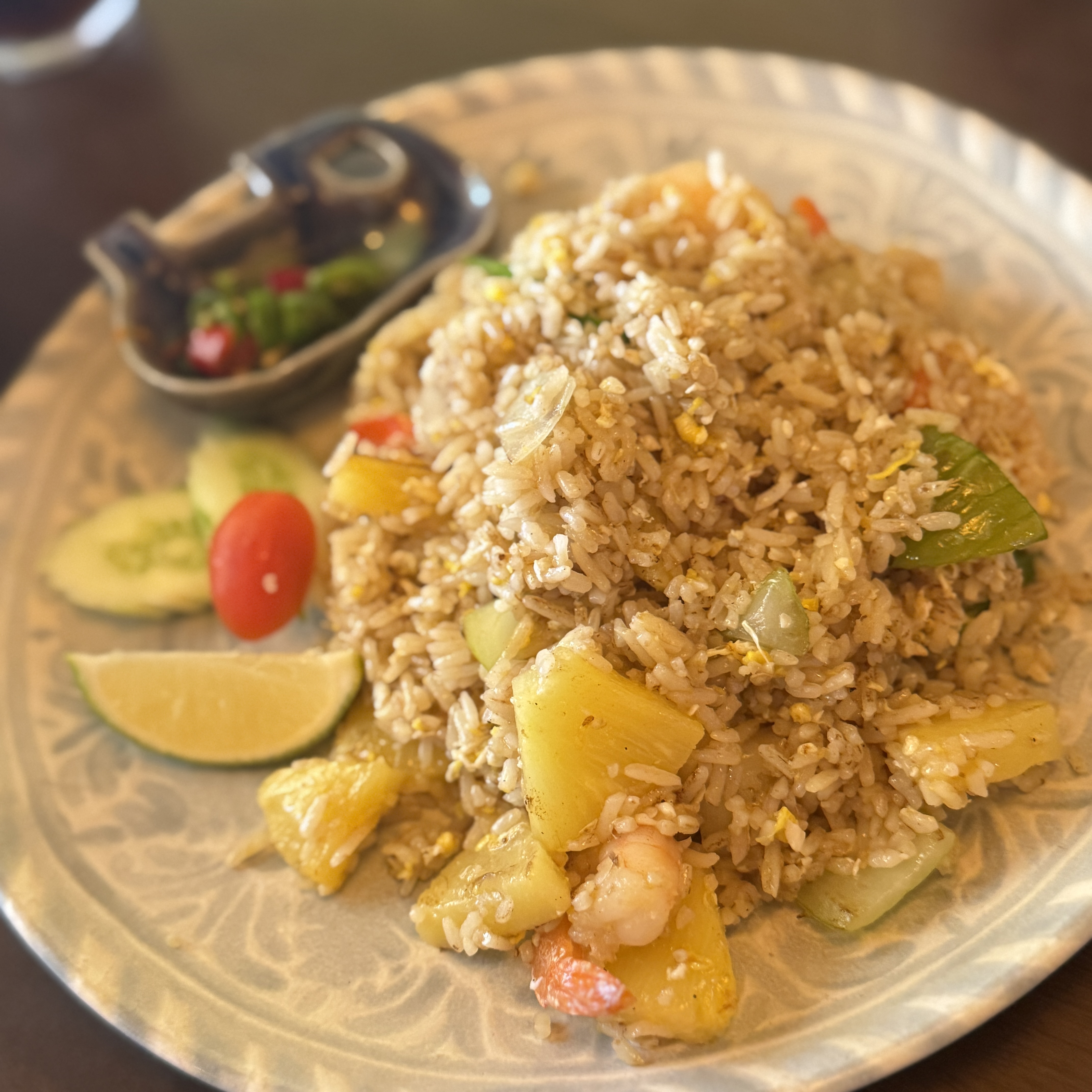 새우 볶음밥 카오팟(11,000원), 새우튀김 꿍춧뺑텃(9,500원), 쌀볶음면 팟타이(13,000원).