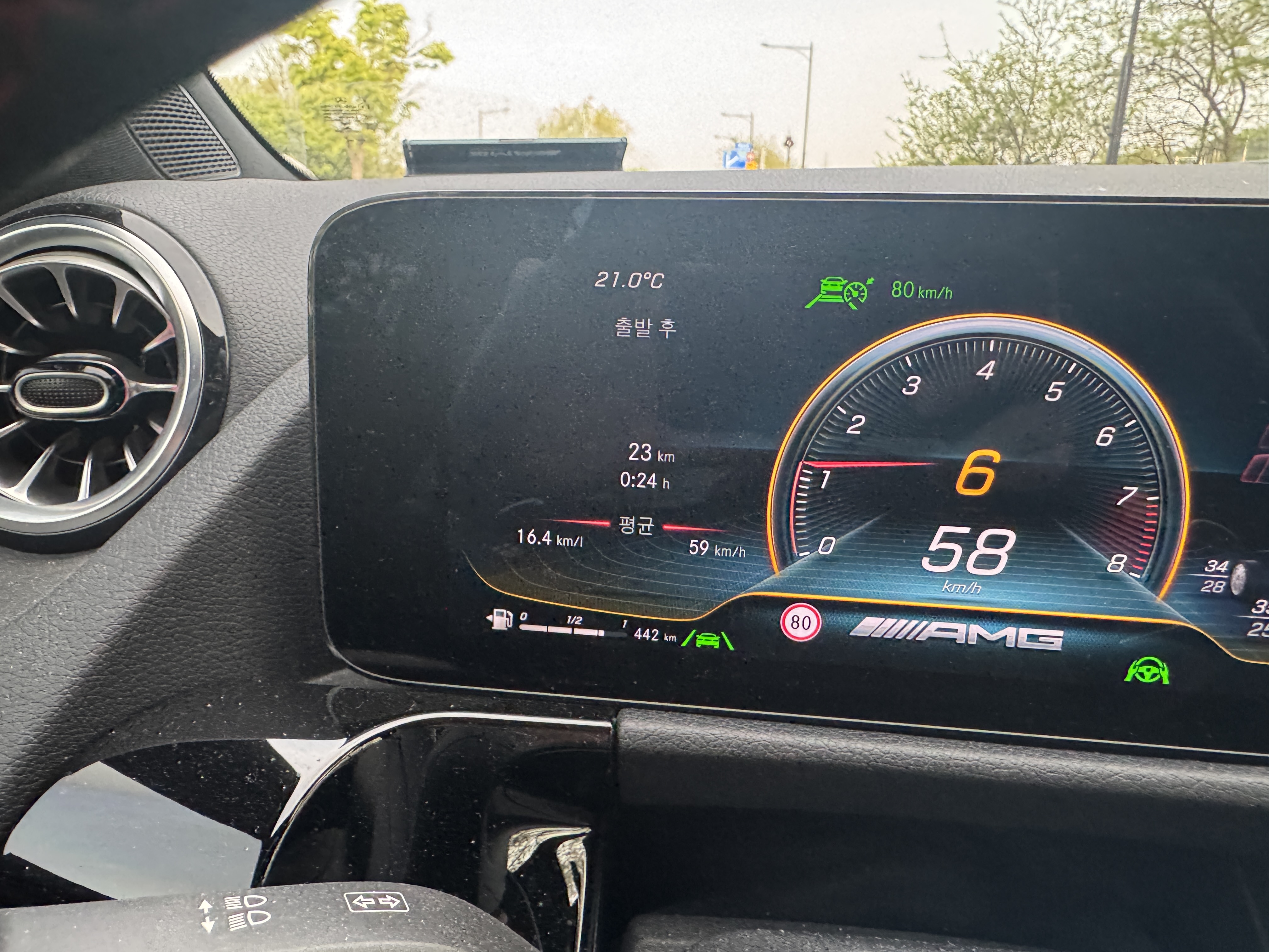 그러다 본 계기판. 종전보다 훨씬 연비가 잘 나오길래 기록 겸해서 찍어뒀다.