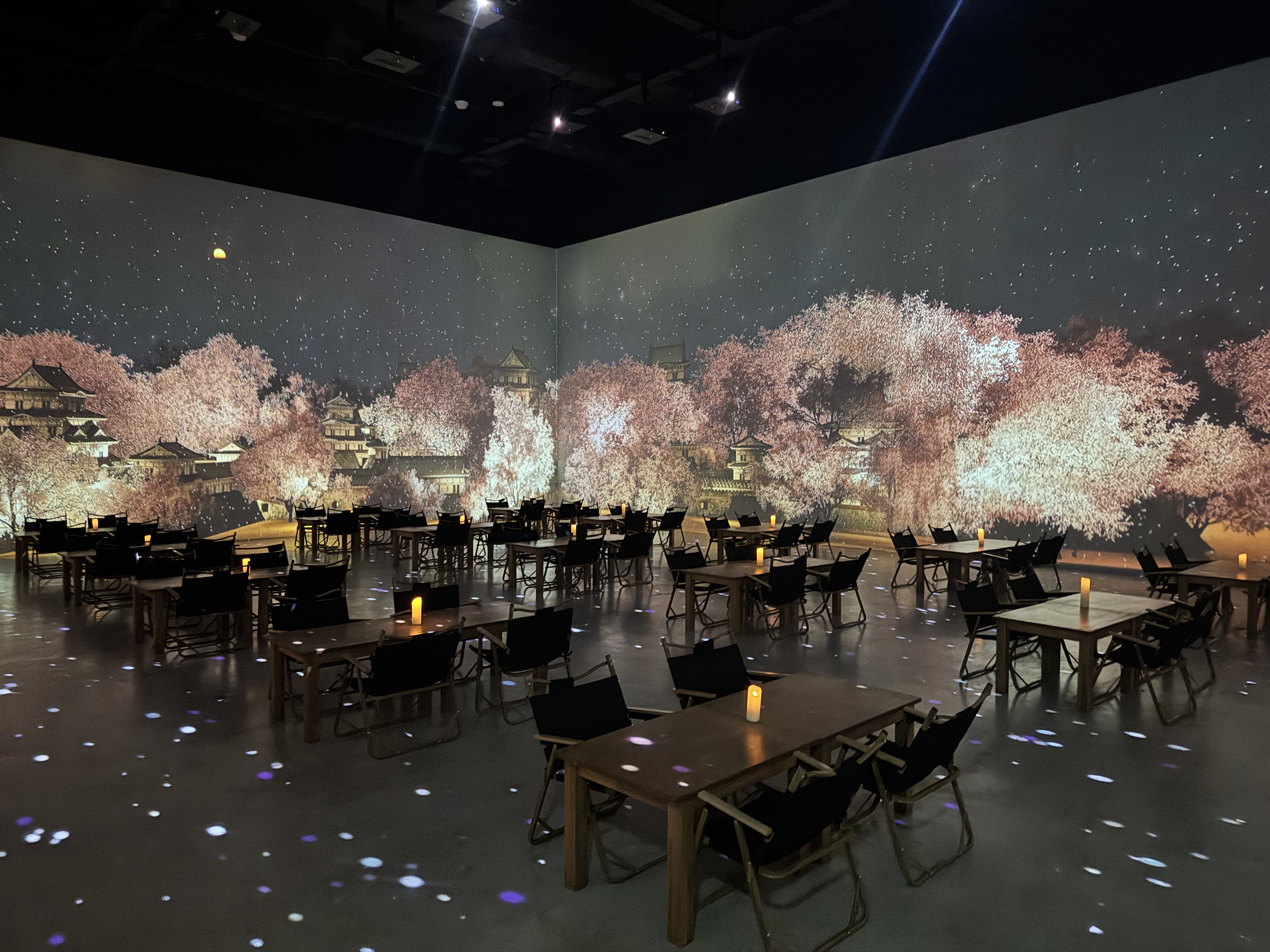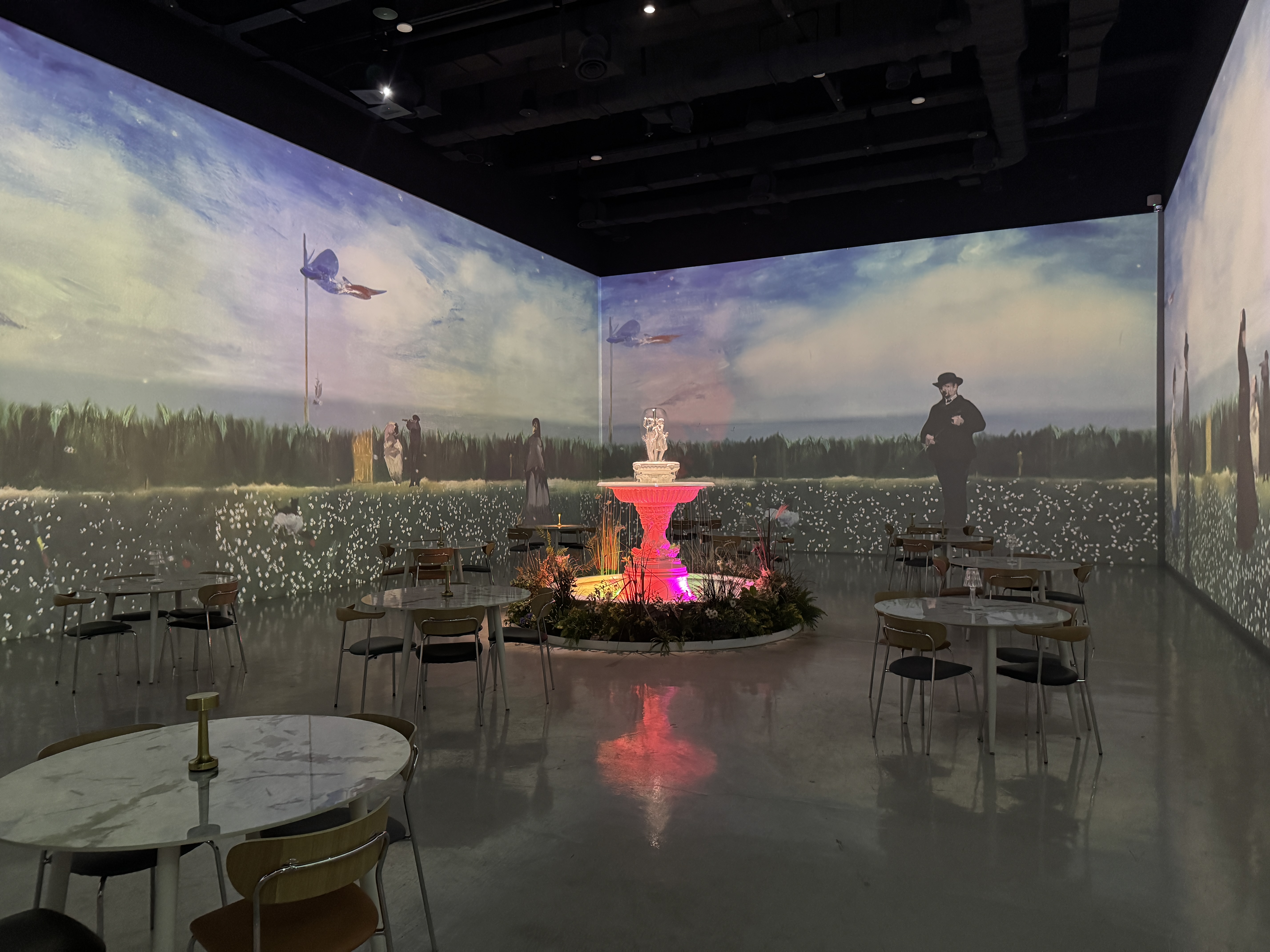 룸마다 각기 다른 콘셉트의 영상과 테이블이 배치되어 있었고,