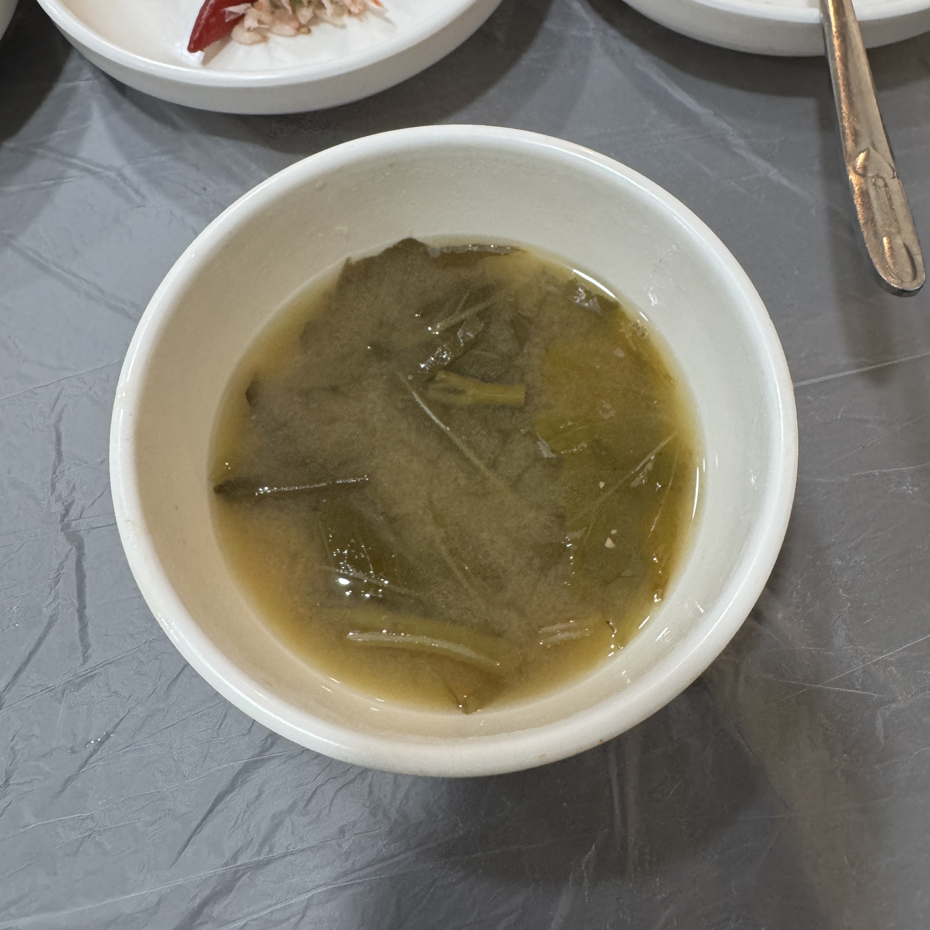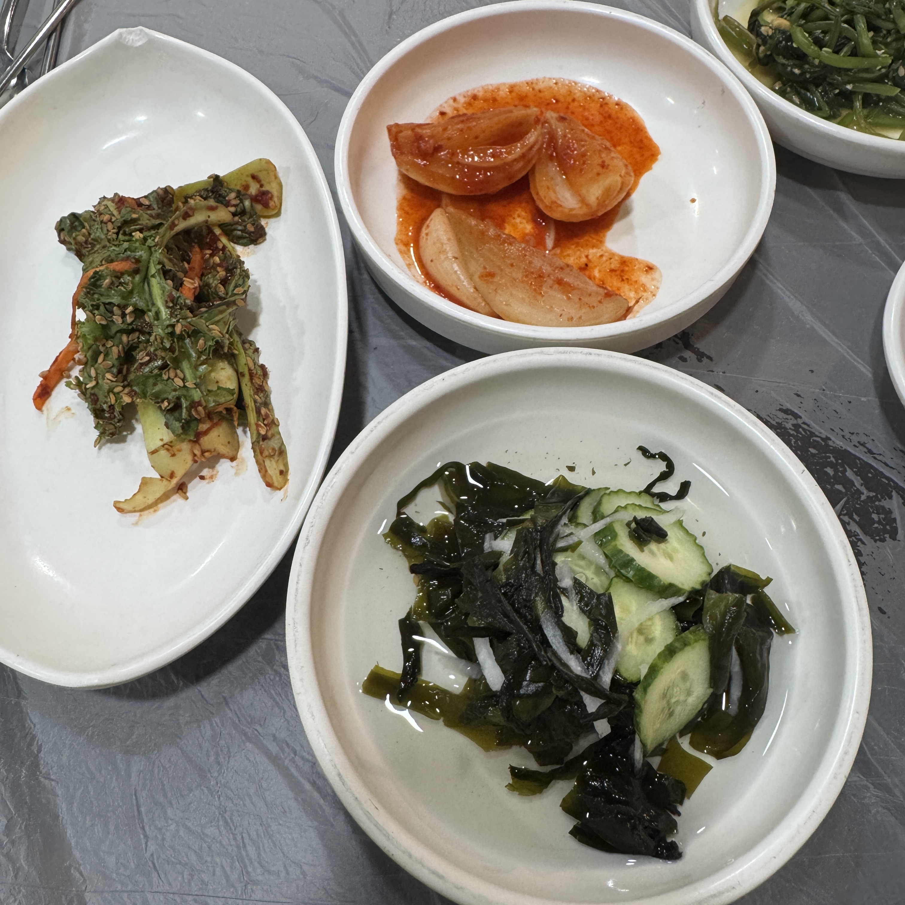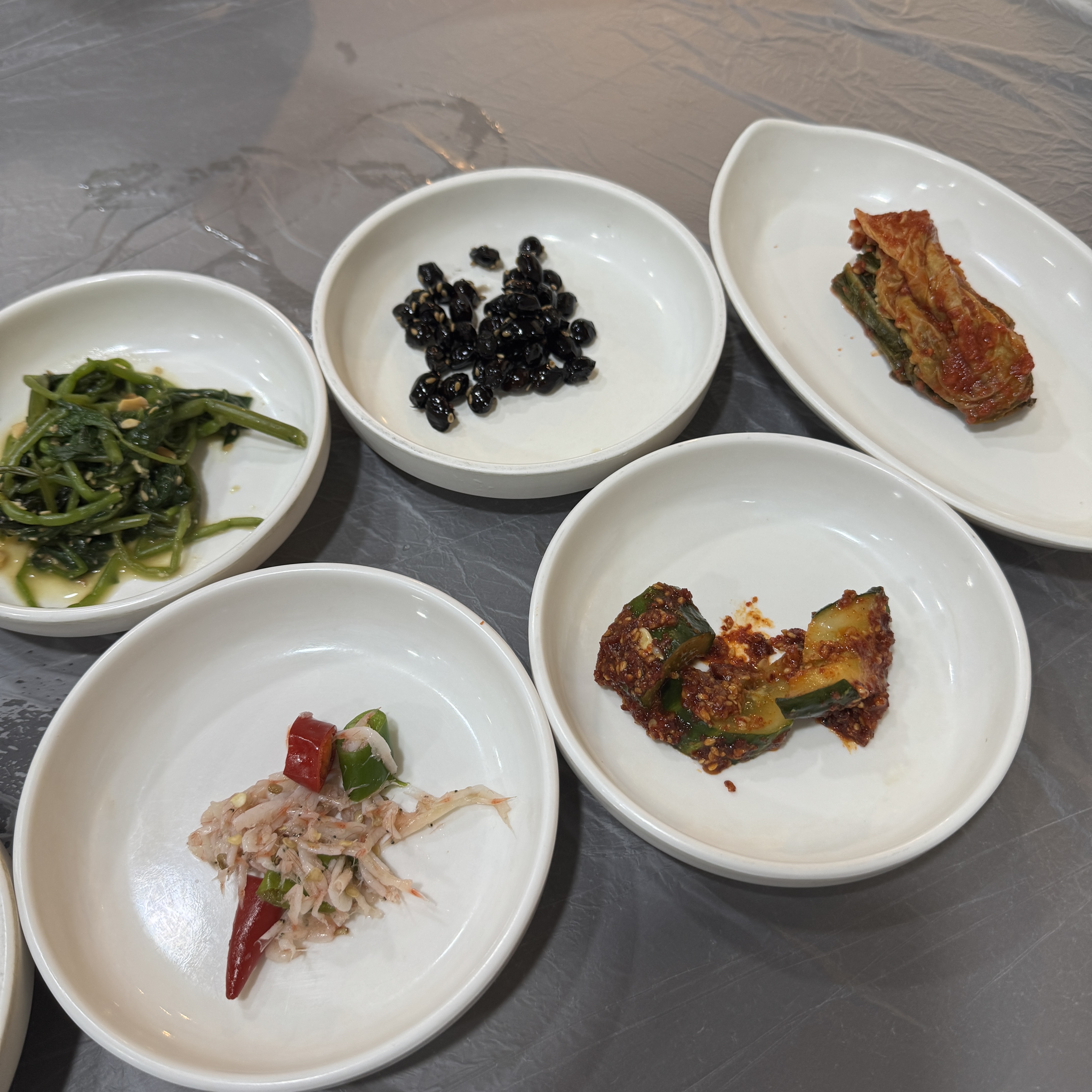 밑반찬들. 딱히 맛있어보인다 그런 건 없었다.