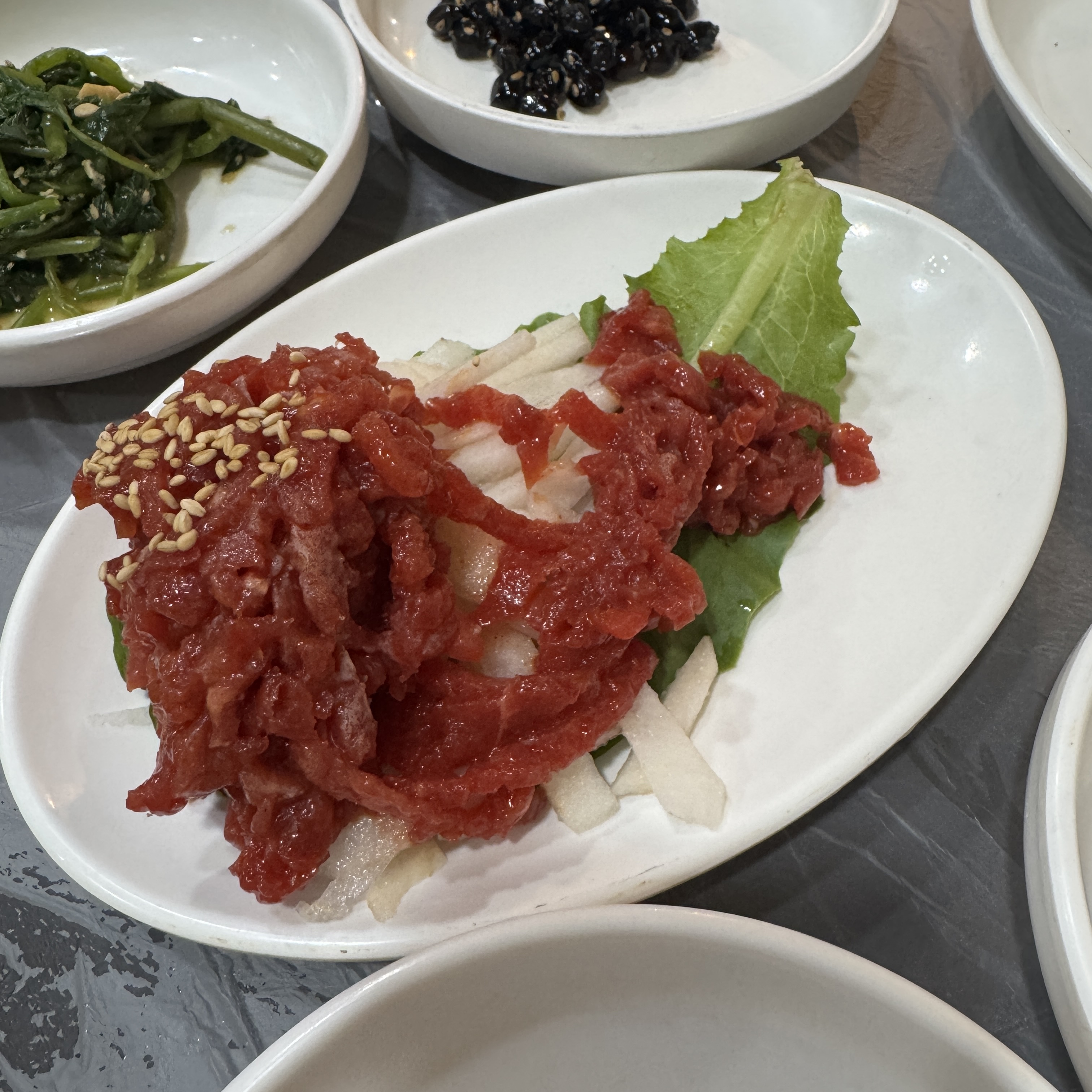 육회를 서비스로 준다. 맛있네. 내 입맛에 잘 맞았던.