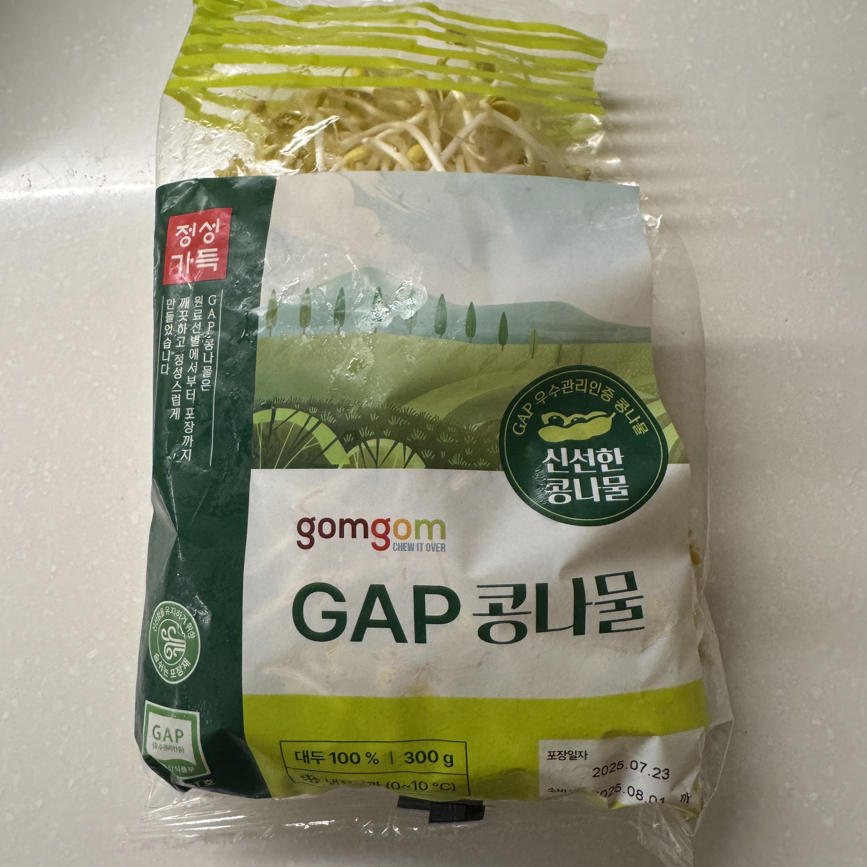 곰곰 GAP 콩나물 300g. 910원. 싸다.