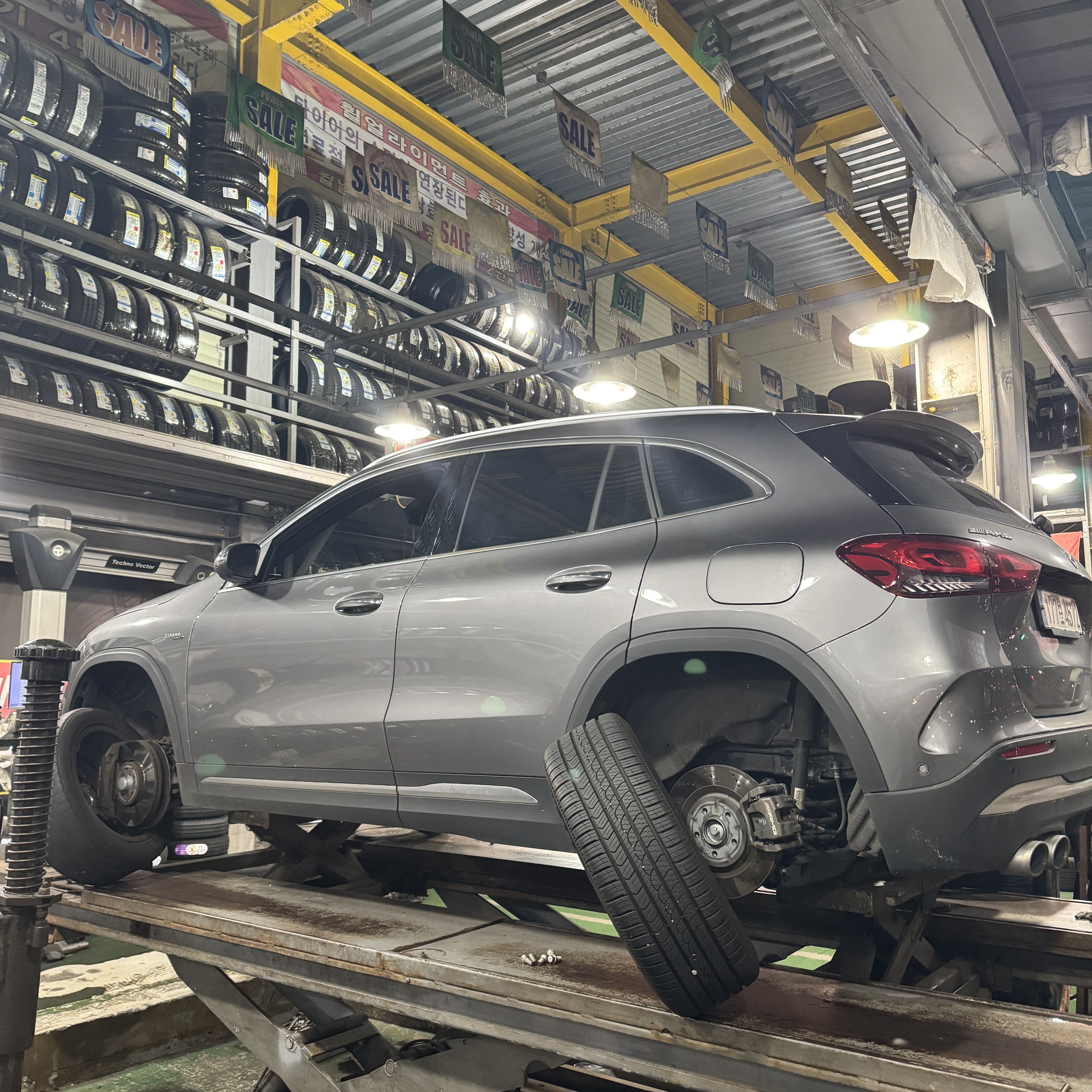 24시간 영업하더라. 하루에 몇 개의 타이어를 갈까?