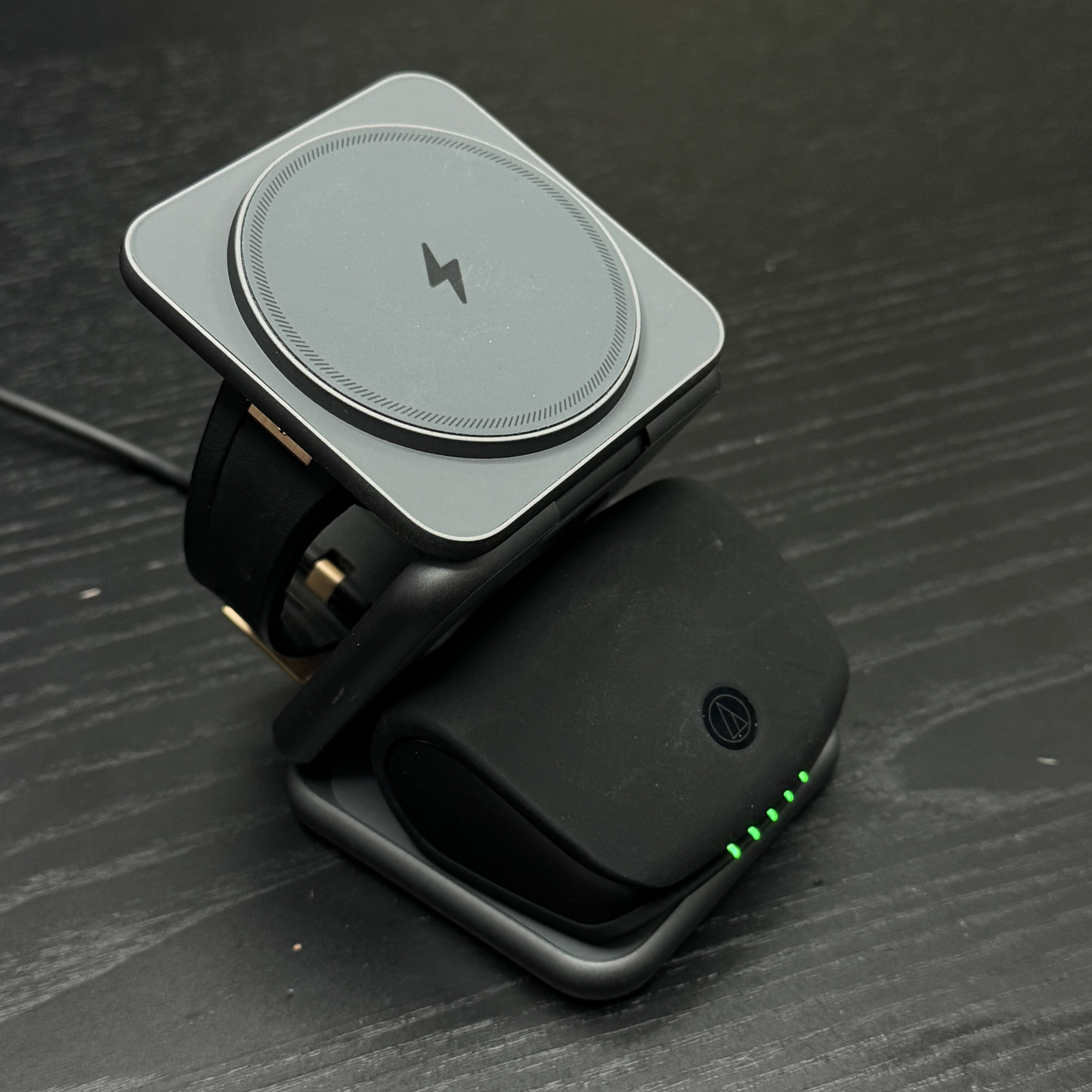 이 제품을 선택한 이유는 애플 워치만이 아니라, 아이폰과 블루투스 이어폰까지 충전 가능한 3in1이기 때문이다. 나는 지금껏 케이블 각각 이용했었거든. 그나마 내 아이폰은 15 프로라 USB-C 케이블로 충전해서 좋긴 하더라. 그렇게 각각의 케이블을 쓰면 알겠지만 지저분해지잖아. 그래서 이렇게 3in1 제품이 눈에 들어온 것.